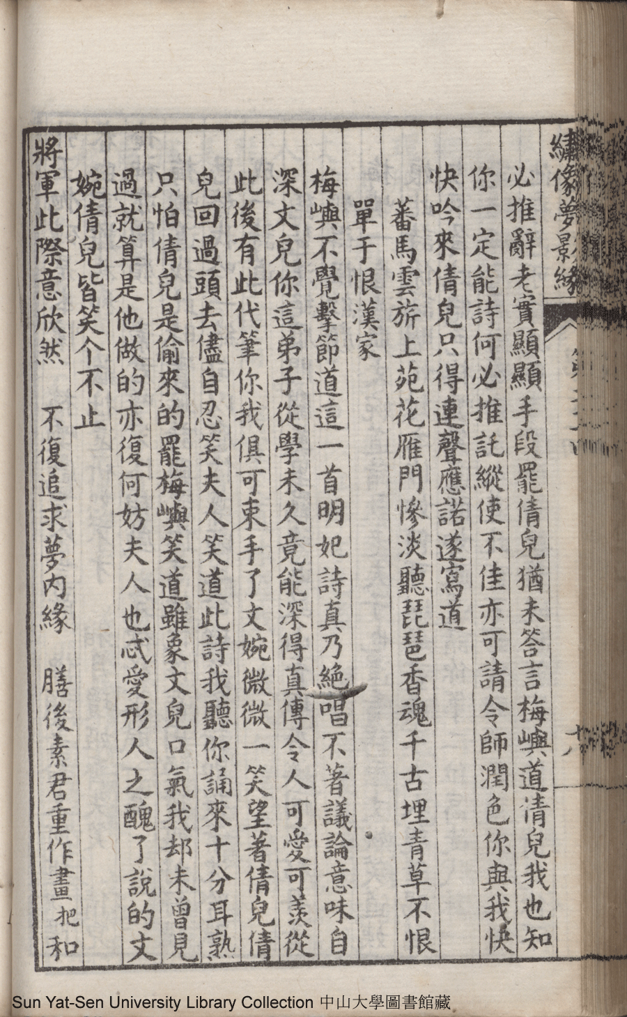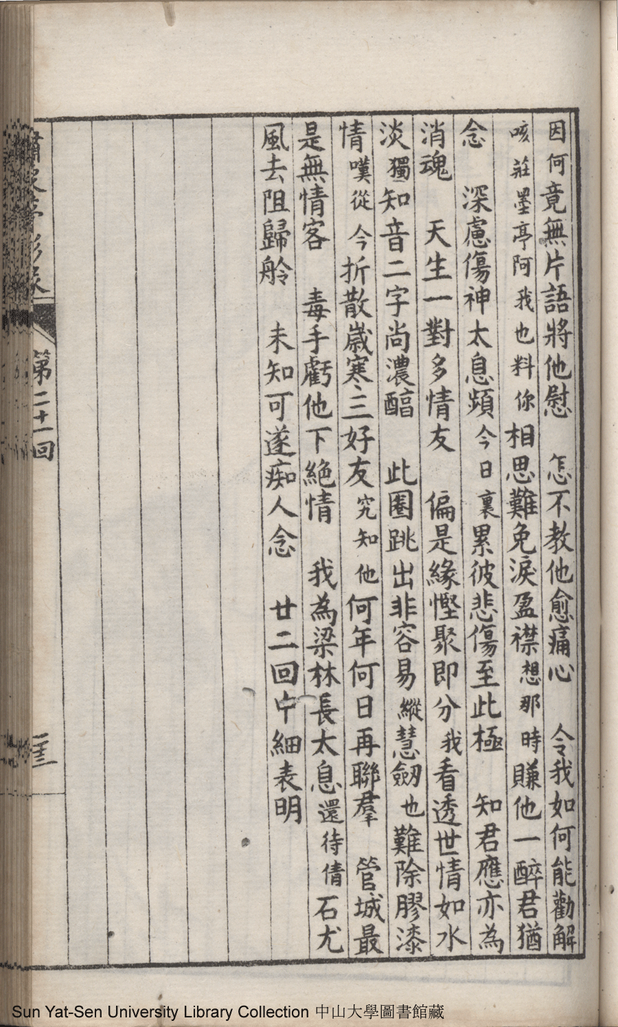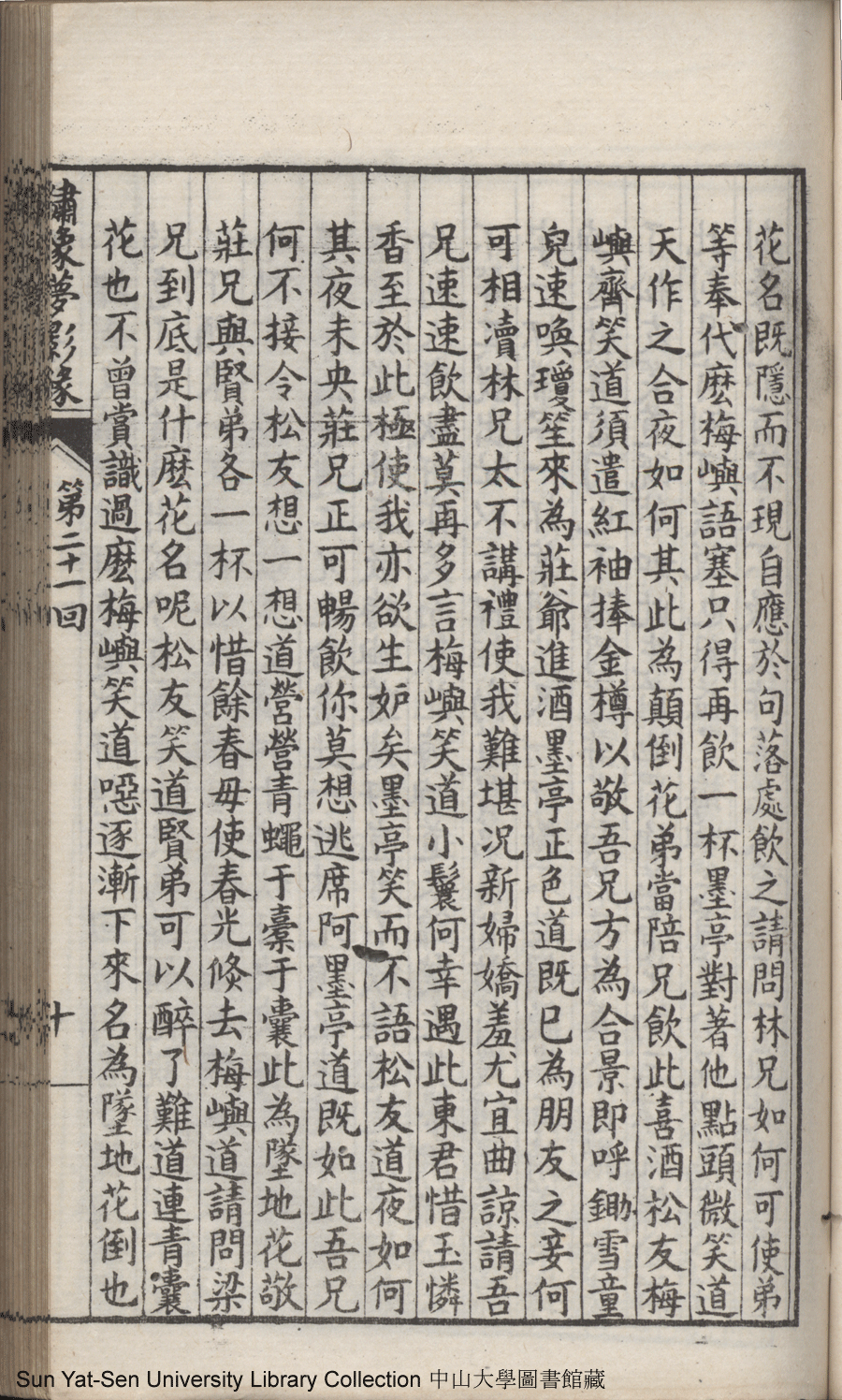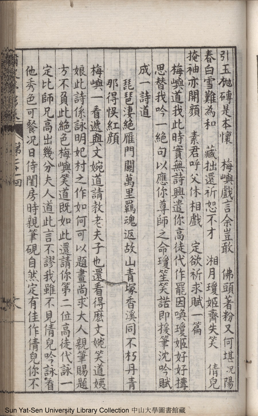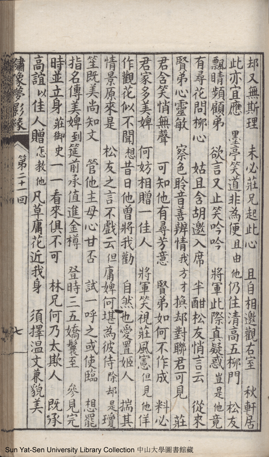 | 第二十一回 杯酒交歡流水桃花互賺多情劉阮 片帆歸速浮雲楊柳思深高誼陳雷 Di er shi yi hui Bei jiu jiao huan liu shui tao hua hu zhuan duo qing Liu Ruan Pian fan gui su fu yun yang liu si shen gao yi Chen Lei 文﹕彈詞 Wen: Tan ci 鄭貞華﹐號爨下生﹐字蕉卿﹐又名澹若 Zheng Zhenhua, hao: Cuanxiasheng, zi: Jiaoqing 繡像夢影緣:四十八回(清鄭貞華撰) Xiu xiang Meng ying yuan: si shi ba hui (by Zheng Zhenhua, Qing Dynasty) , pp. 第二十一回10a,第二十一回10b,第二十一回11a,第二十一回11b,第二十一回12a,第二十一回12b,第二十一回13a,第二十一回13b,第二十一回14a,第二十一回14b,第二十一回15a,第二十一回15b,第二十一回16a,第二十一回16b,第二十一回17a,第二十一回17b,第二十一回18a,第二十一回18b,第二十一回19a,第二十一回19b,第二十一回1a,第二十一回1b,第二十一回20a,第二十一回20b,第二十一回21a,第二十一回21b,第二十一回22a,第二十一回22b,第二十一回23a,第二十一回23b,第二十一回2a,第二十一回2b,第二十一回3a,第二十一回3b,第二十一回4a,第二十一回4b,第二十一回5a,第二十一回5b,第二十一回6a,第二十一回6b,第二十一回7a,第二十一回7b,第二十一回8a,第二十一回8b,第二十一回9a,第二十一回9b. |