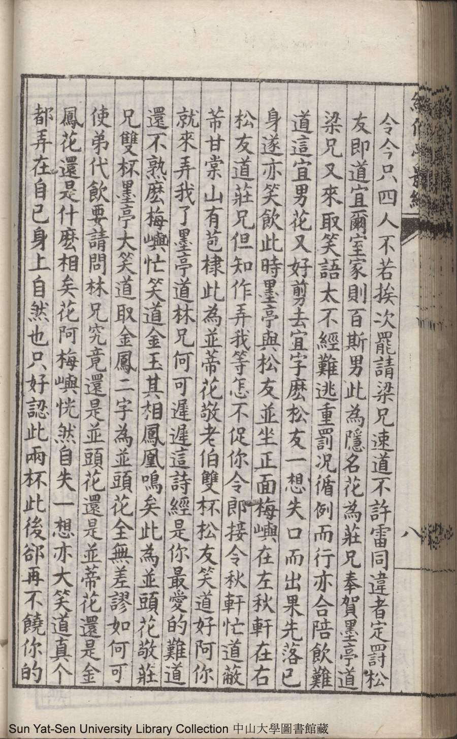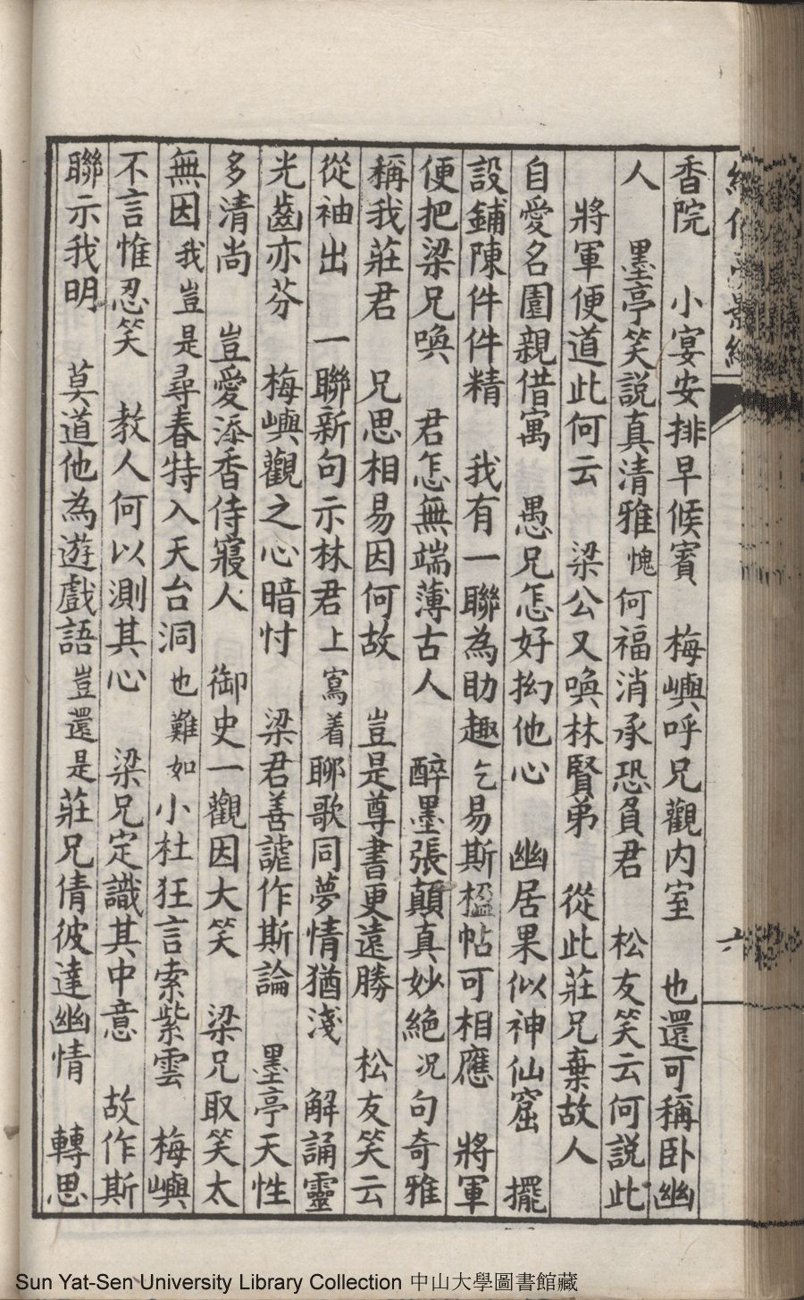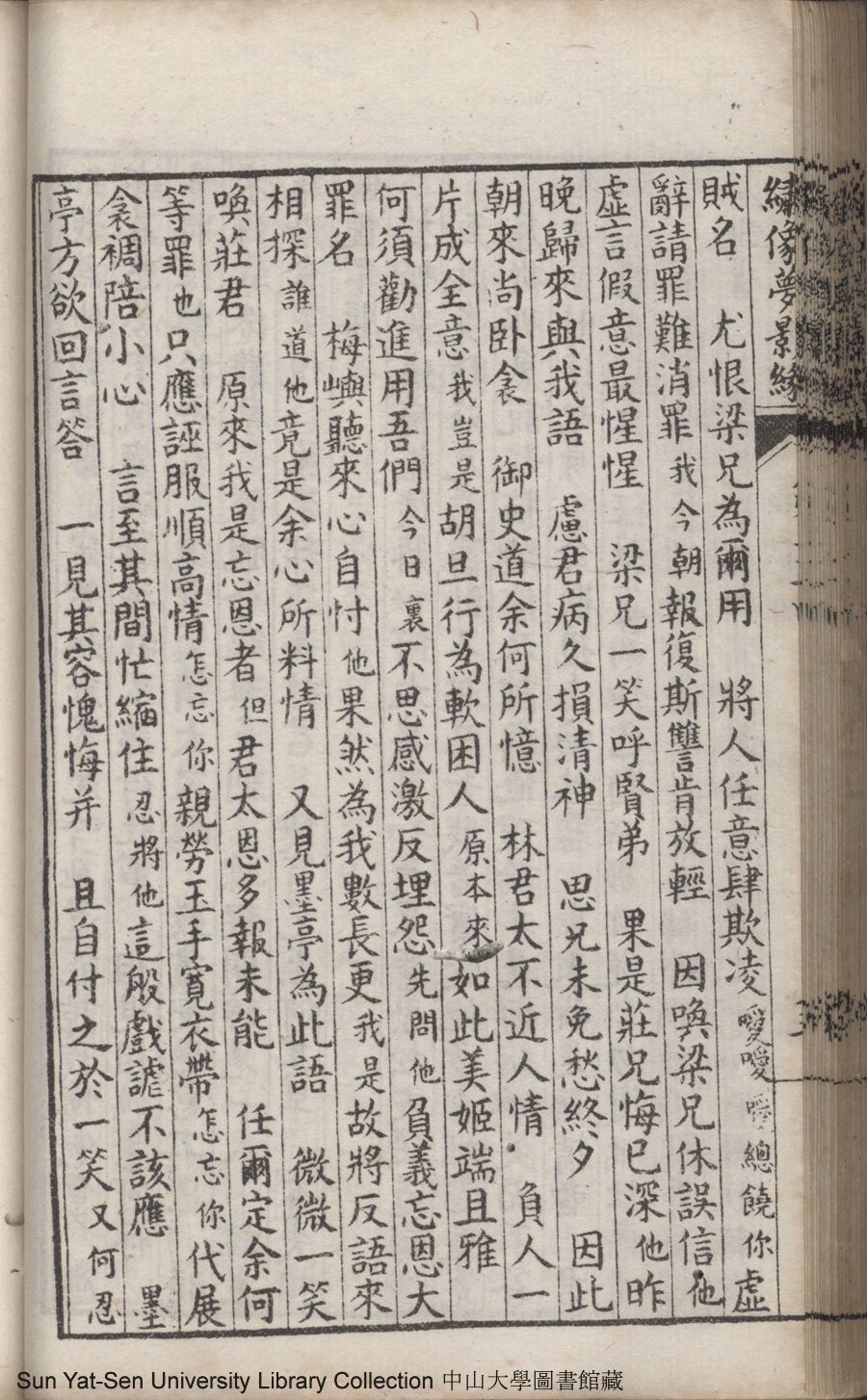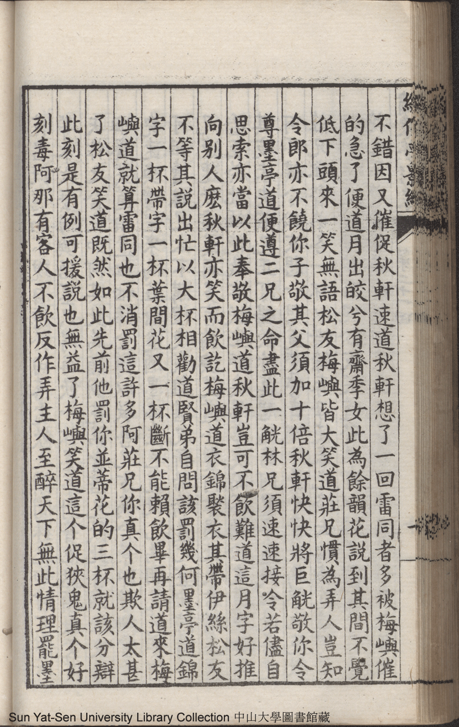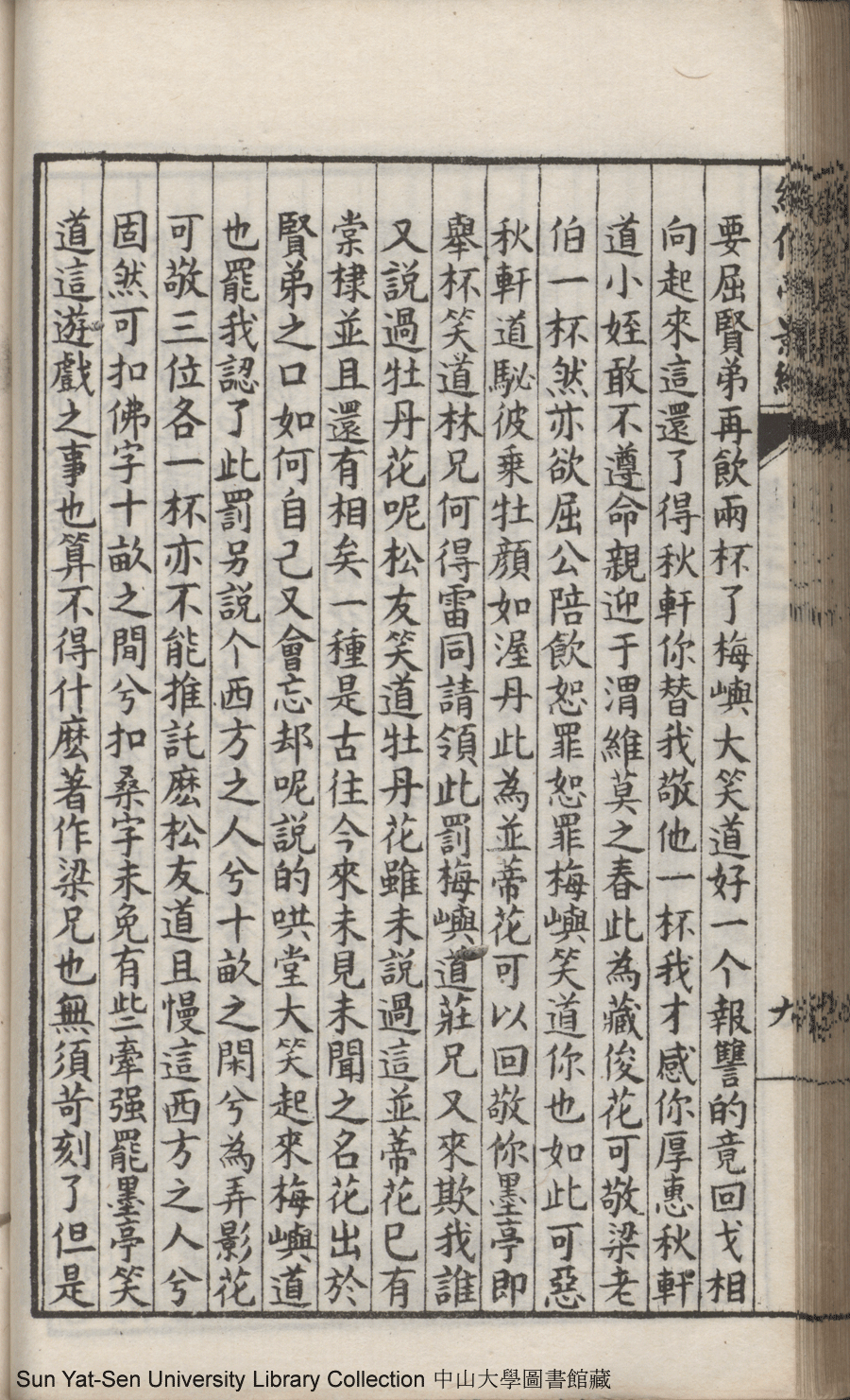 | 第二十一回 杯酒交歡流水桃花互賺多情劉阮 片帆歸速浮雲楊柳思深高誼陳雷 Di er shi yi hui Bei jiu jiao huan liu shui tao hua hu zhuan duo qing Liu Ruan Pian fan gui su fu yun yang liu si shen gao yi Chen Lei 文﹕彈詞 Wen: Tan ci 鄭貞華﹐號爨下生﹐字蕉卿﹐又名澹若 Zheng Zhenhua, hao: Cuanxiasheng, zi: Jiaoqing 繡像夢影緣:四十八回(清鄭貞華撰) Xiu xiang Meng ying yuan: si shi ba hui (by Zheng Zhenhua, Qing Dynasty) , pp. 第二十一回10a,第二十一回10b,第二十一回11a,第二十一回11b,第二十一回12a,第二十一回12b,第二十一回13a,第二十一回13b,第二十一回14a,第二十一回14b,第二十一回15a,第二十一回15b,第二十一回16a,第二十一回16b,第二十一回17a,第二十一回17b,第二十一回18a,第二十一回18b,第二十一回19a,第二十一回19b,第二十一回1a,第二十一回1b,第二十一回20a,第二十一回20b,第二十一回21a,第二十一回21b,第二十一回22a,第二十一回22b,第二十一回23a,第二十一回23b,第二十一回2a,第二十一回2b,第二十一回3a,第二十一回3b,第二十一回4a,第二十一回4b,第二十一回5a,第二十一回5b,第二十一回6a,第二十一回6b,第二十一回7a,第二十一回7b,第二十一回8a,第二十一回8b,第二十一回9a,第二十一回9b. |