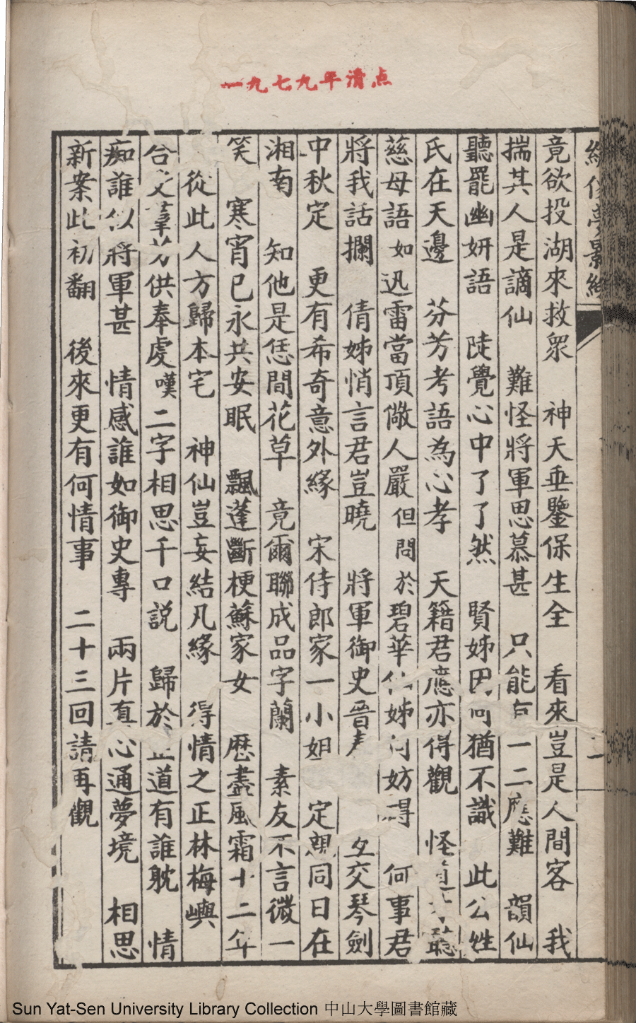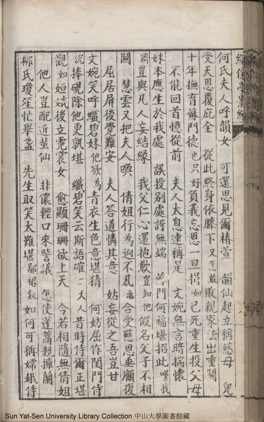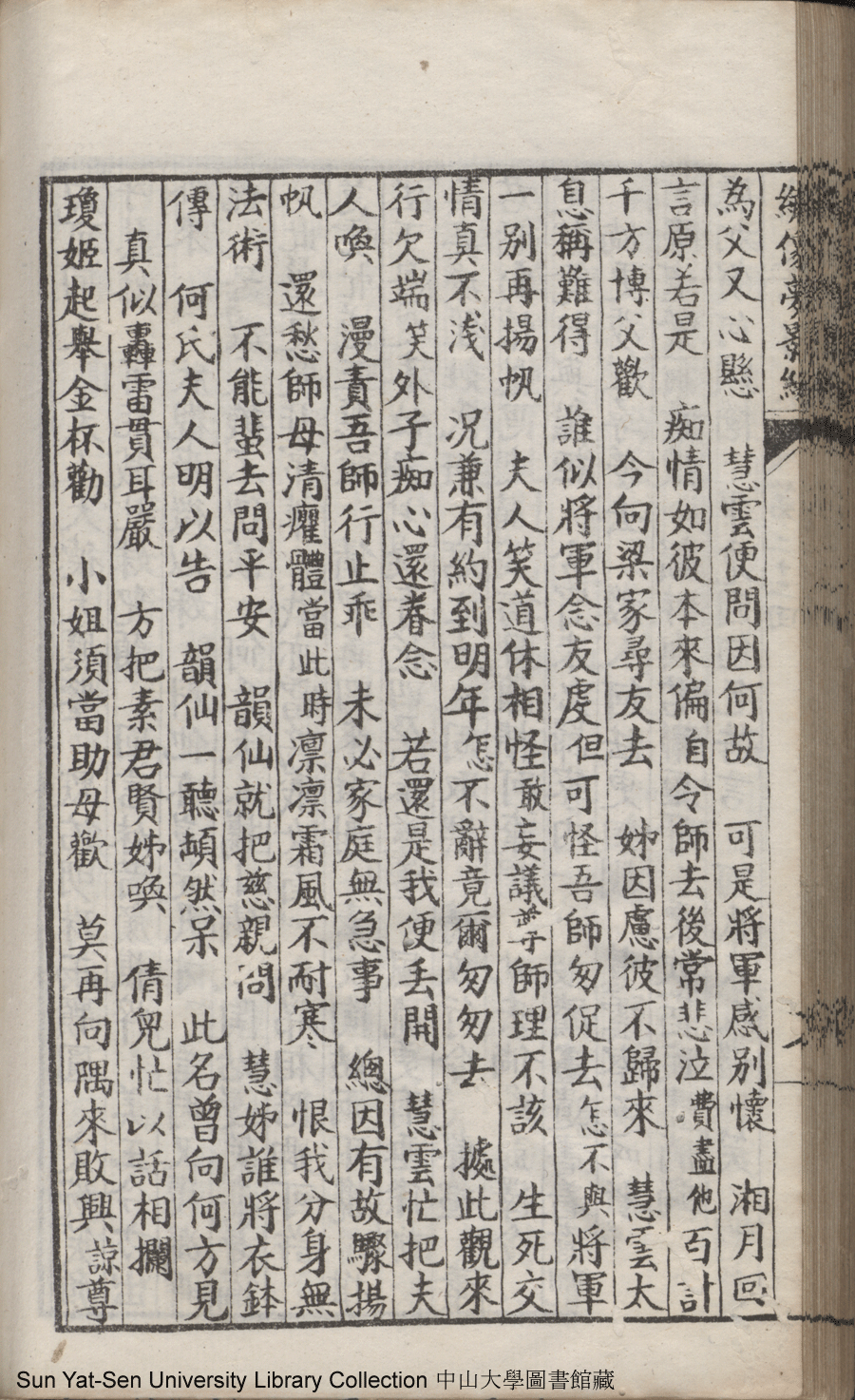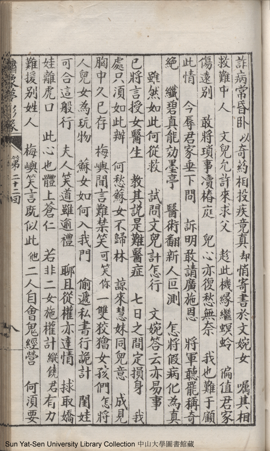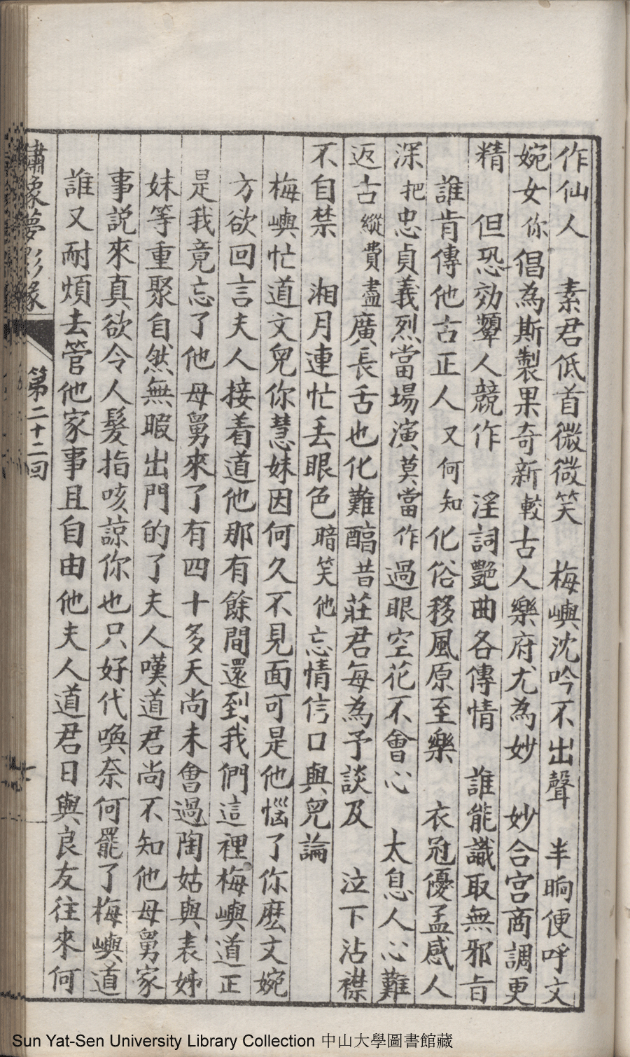| 第二十二回 心盟白水徜徉遠夢涉三湘 計中金蟬漂泊餘生依大蔭 Di er shi er hui Xin meng Bai shui chang yang yuan meng she san Xiang Ji zhong jin chan piao bo yu sheng yi da yin 文﹕彈詞 Wen: Tan ci 鄭貞華﹐號爨下生﹐字蕉卿﹐又名澹若 Zheng Zhenhua, hao: Cuanxiasheng, zi: Jiaoqing 繡像夢影緣:四十八回(清鄭貞華撰) Xiu xiang Meng ying yuan: si shi ba hui (by Zheng Zhenhua, Qing Dynasty) , pp. 第二十二回10a,第二十二回10b,第二十二回11a,第二十二回11b,第二十二回12a,第二十二回12b,第二十二回13a,第二十二回13b,第二十二回14a,第二十二回14b,第二十二回15a,第二十二回15b,第二十二回16a,第二十二回16b,第二十二回17a,第二十二回17b,第二十二回18a,第二十二回18b,第二十二回19a,第二十二回19b,第二十二回1a,第二十二回1b,第二十二回20a,第二十二回20b,第二十二回21a,第二十二回21b,第二十二回2a,第二十二回2b,第二十二回3a,第二十二回3b,第二十二回4a,第二十二回4b,第二十二回5a,第二十二回5b,第二十二回6a,第二十二回6b,第二十二回7a,第二十二回7b,第二十二回8a,第二十二回8b,第二十二回9a,第二十二回9b. |