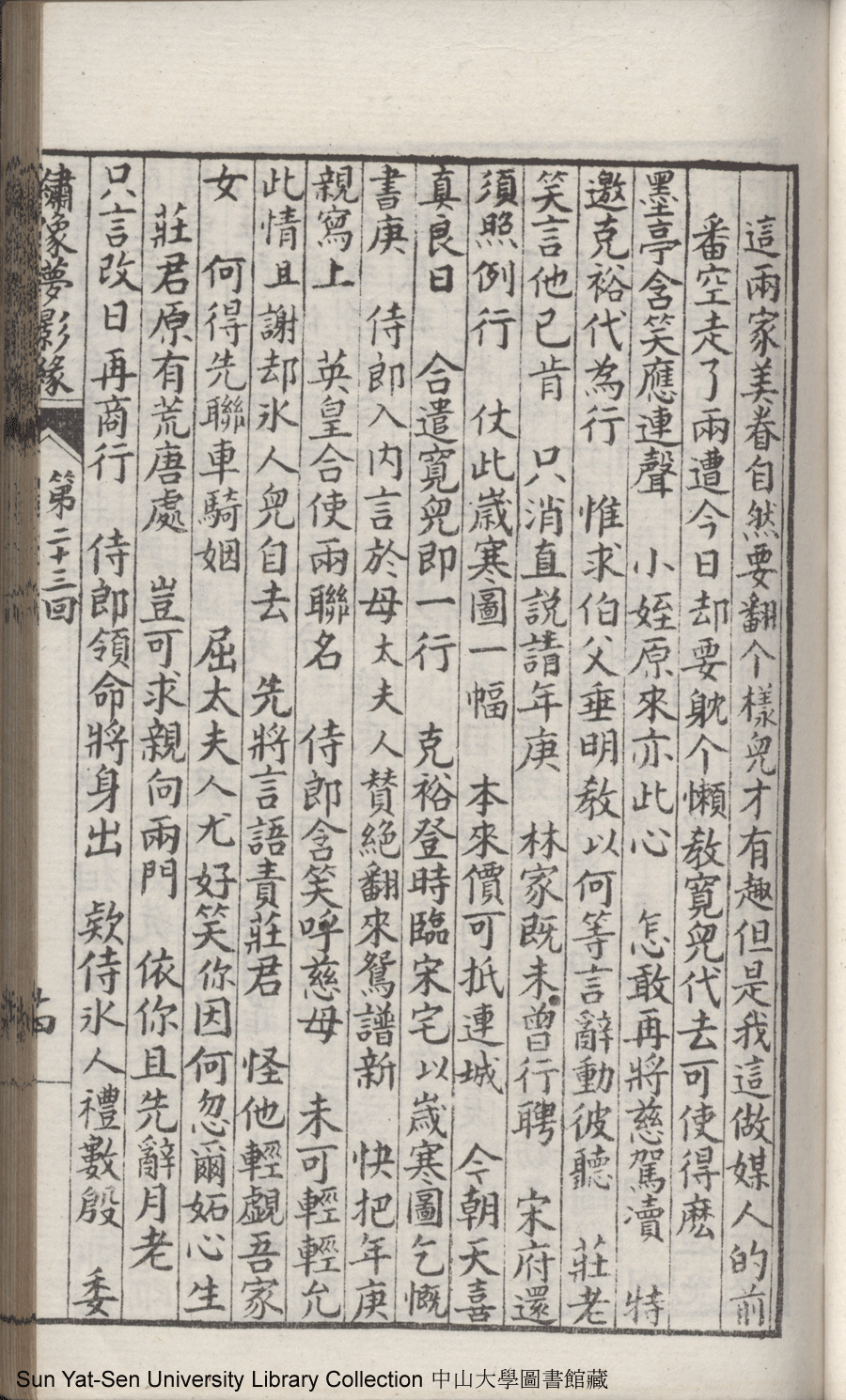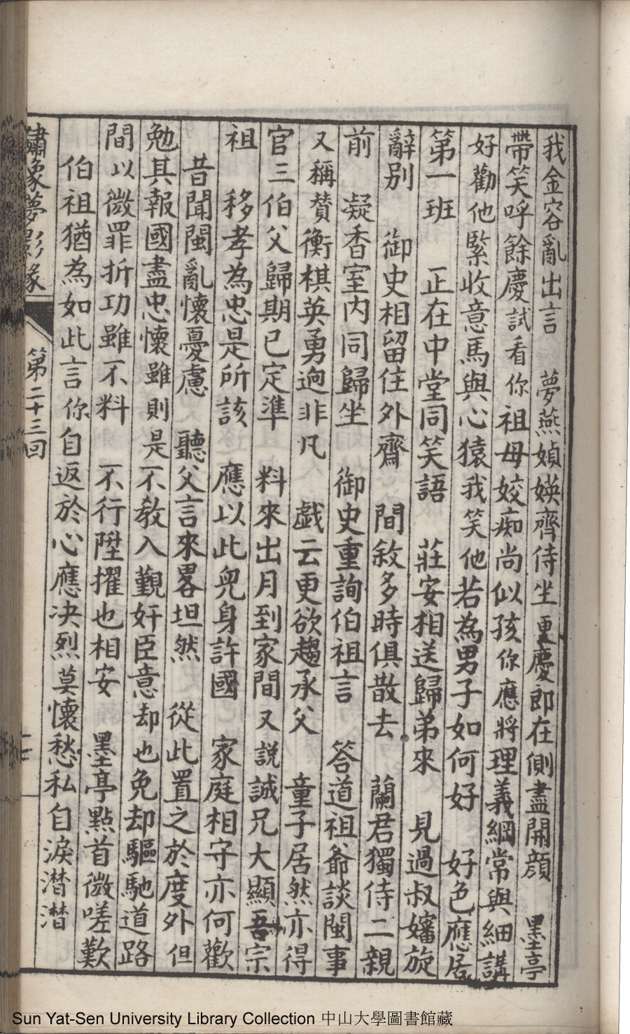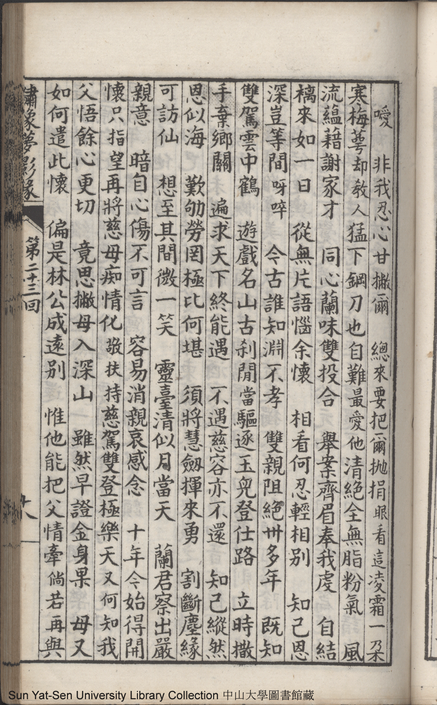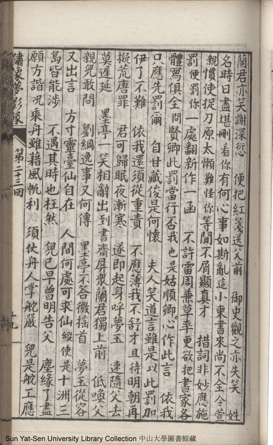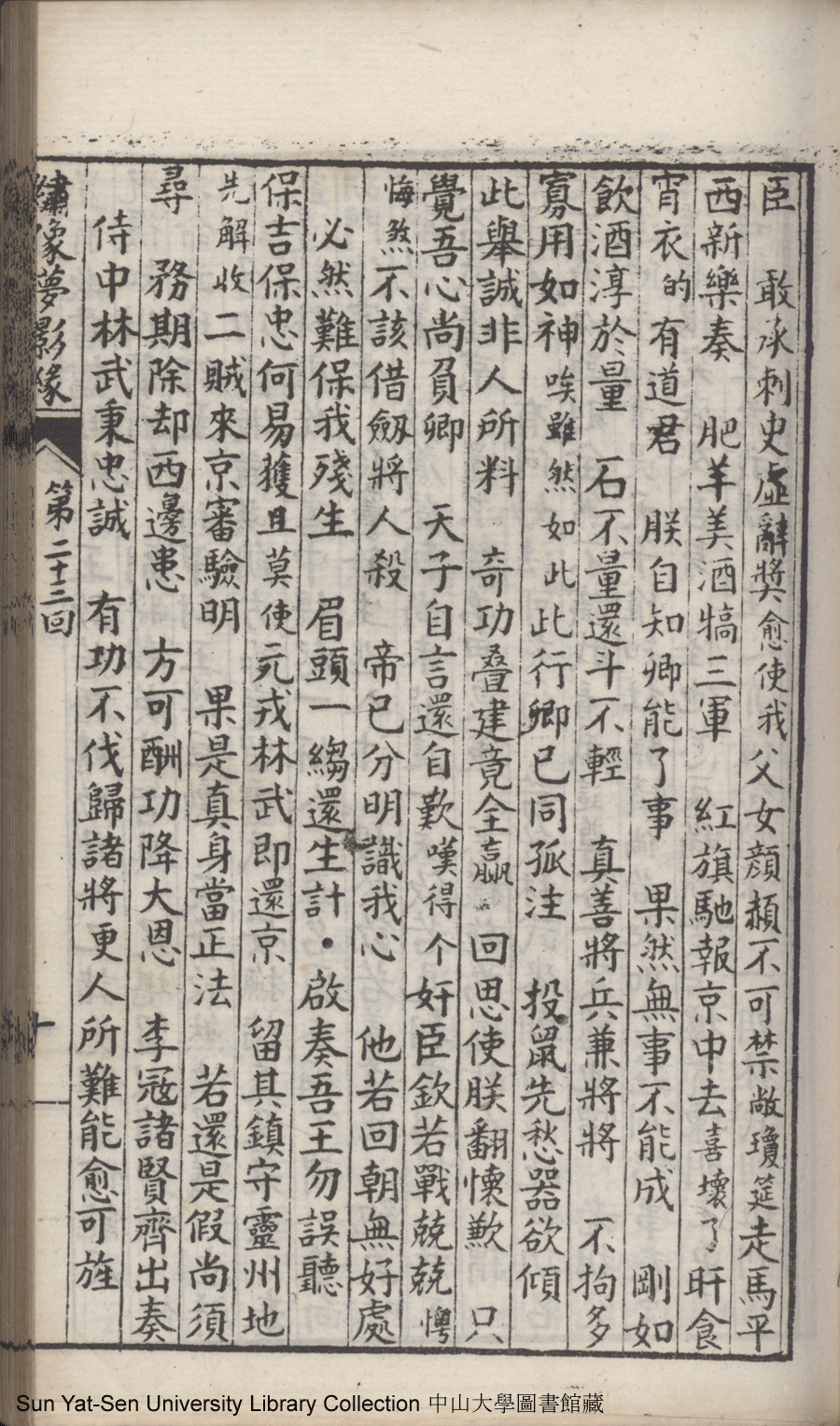 | 第二十三回 建奇功效顰甘受東施誚 持本願割愛思爲五岳游 Di er shi san hui Jian qi gong xiao pin gan shou Dong Shi qiao Chi ben yuan ge ai si wei Wu Yue you 文﹕彈詞 Wen: Tan ci 鄭貞華﹐號爨下生﹐字蕉卿﹐又名澹若 Zheng Zhenhua, hao: Cuanxiasheng, zi: Jiaoqing 繡像夢影緣:四十八回(清鄭貞華撰) Xiu xiang Meng ying yuan: si shi ba hui (by Zheng Zhenhua, Qing Dynasty) , pp. 第二十三回10a,第二十三回10b,第二十三回11a,第二十三回11b,第二十三回12a,第二十三回12b,第二十三回13a,第二十三回13b,第二十三回14a,第二十三回14b,第二十三回15a,第二十三回15b,第二十三回16a,第二十三回16b,第二十三回17a,第二十三回17b,第二十三回18a,第二十三回18b,第二十三回19a,第二十三回19b,第二十三回1a,第二十三回1b,第二十三回20a,第二十三回20b,第二十三回21a,第二十三回21b,第二十三回2a,第二十三回2b,第二十三回3a,第二十三回3b,第二十三回4a,第二十三回4b,第二十三回5a,第二十三回5b,第二十三回6a,第二十三回6b,第二十三回7a,第二十三回7b,第二十三回8a,第二十三回8b,第二十三回9a,第二十三回9b. |