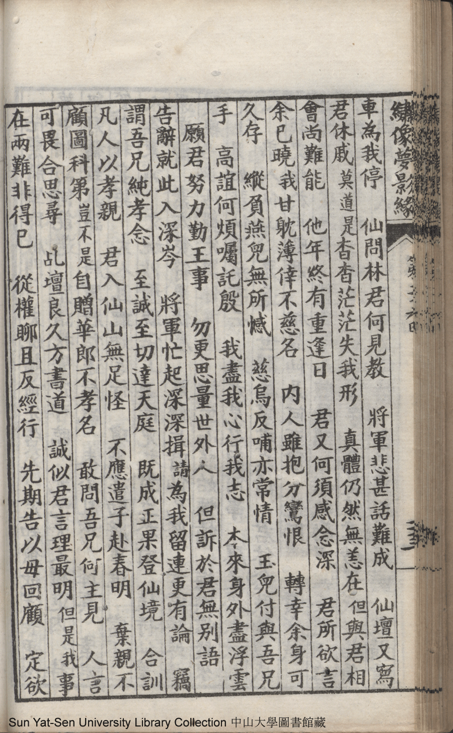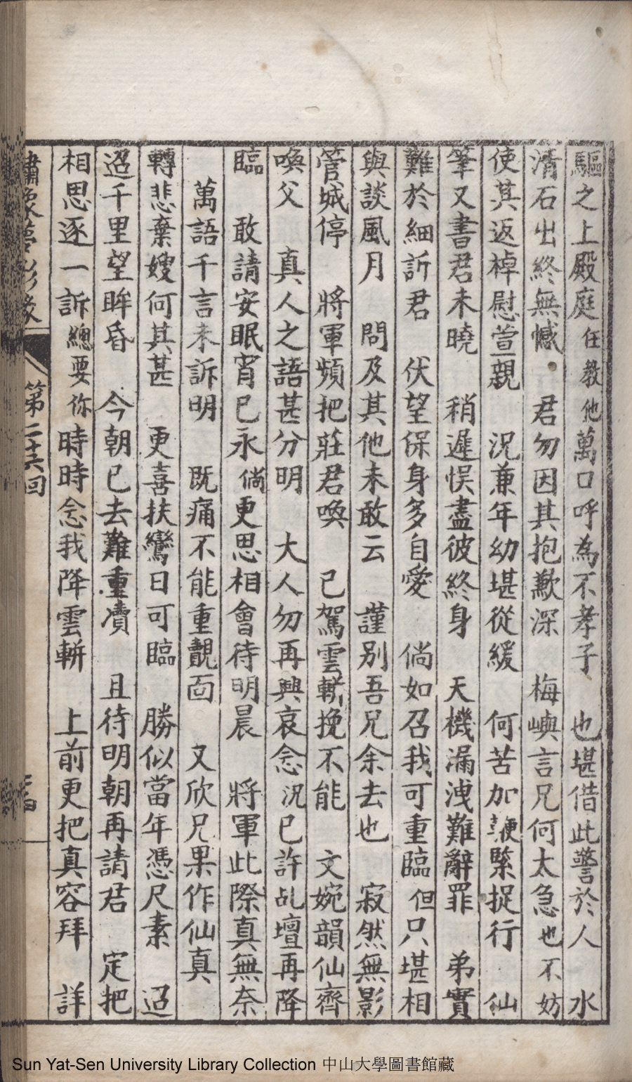 | 第二十六回 心孝成圖感召春風仙子 手靈逞術誠求秋水真人 Di er shi liu hui Xin xiao cheng tu gan zhao Chunfeng xian zi Shou ling cheng shu cheng qiu Qiushui zhen ren 文﹕彈詞 Wen: Tan ci 鄭貞華﹐號爨下生﹐字蕉卿﹐又名澹若 Zheng Zhenhua, hao: Cuanxiasheng, zi: Jiaoqing 繡像夢影緣:四十八回(清鄭貞華撰) Xiu xiang Meng ying yuan: si shi ba hui (by Zheng Zhenhua, Qing Dynasty) , pp. 第二十六回10a,第二十六回10b,第二十六回11a,第二十六回11b,第二十六回12a,第二十六回12b,第二十六回13a,第二十六回13b,第二十六回14a,第二十六回14b,第二十六回15a,第二十六回15b,第二十六回16a,第二十六回16b,第二十六回17a,第二十六回17b,第二十六回18a,第二十六回18b,第二十六回19a,第二十六回19b,第二十六回1a,第二十六回1b,第二十六回20a,第二十六回20b,第二十六回21a,第二十六回21b,第二十六回22a,第二十六回22b,第二十六回23a,第二十六回23b,第二十六回24a,第二十六回24b,第二十六回25a,第二十六回25b,第二十六回26a,第二十六回26b,第二十六回2a,第二十六回2b,第二十六回3a,第二十六回3b,第二十六回4a,第二十六回4b,第二十六回5a,第二十六回5b,第二十六回6a,第二十六回6b,第二十六回7a,第二十六回7b,第二十六回8a,第二十六回8b,第二十六回9a,第二十六回9b. |