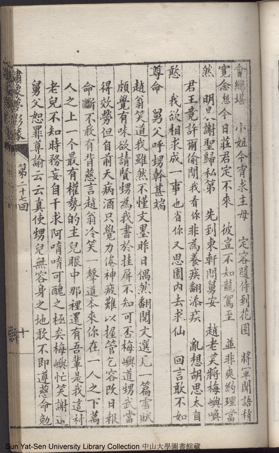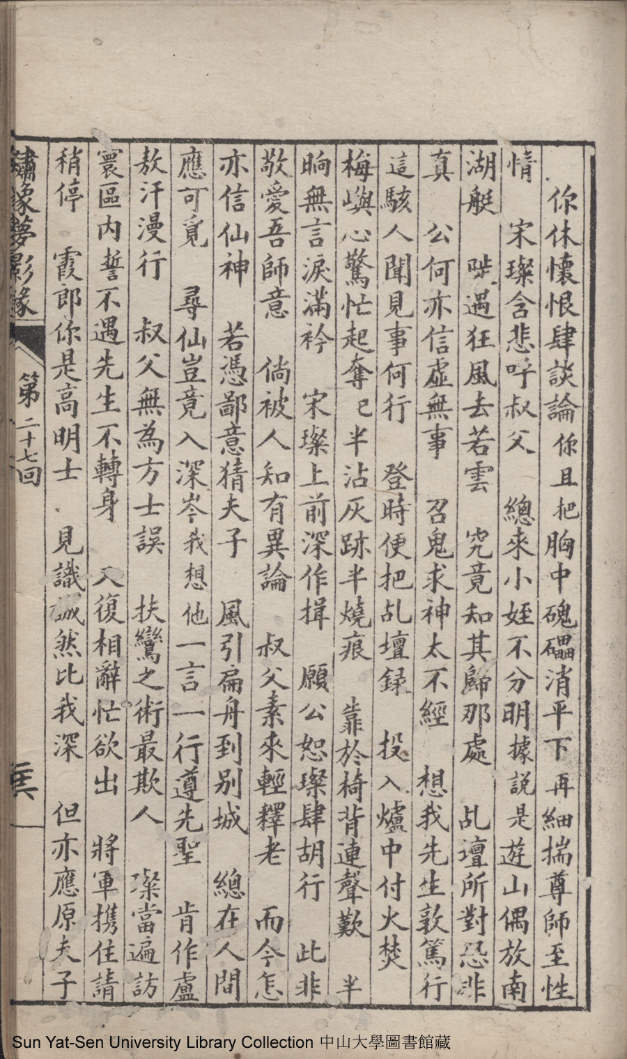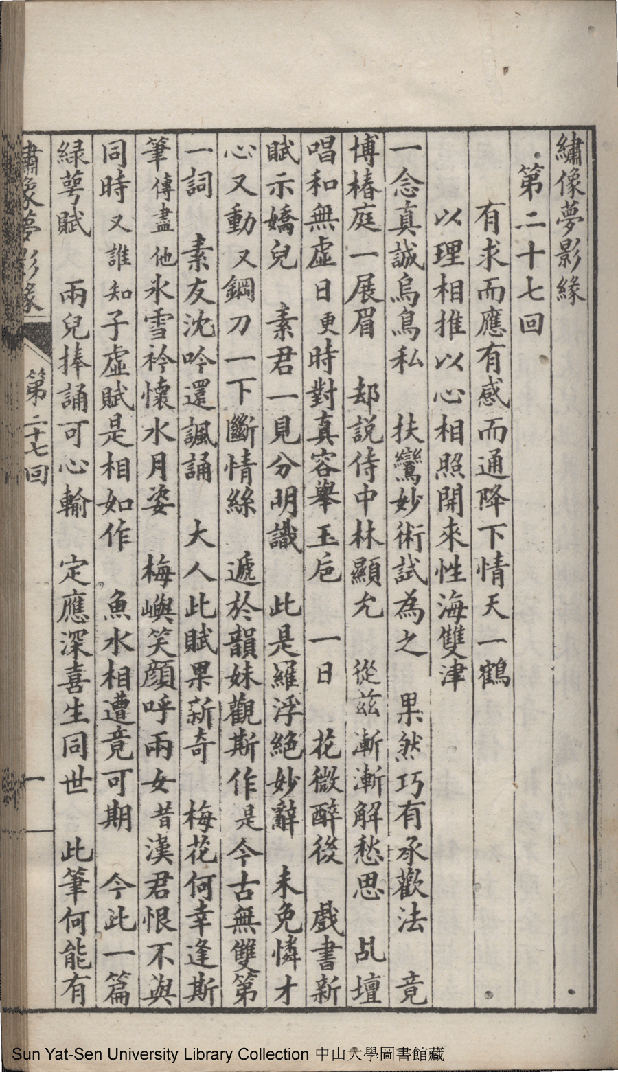 | 第二十七回 有求而應有感而通降下情天一鶴 以理相推以心相印開來性海雙津 Di er shi qi hui You qiu er ying you gan er tong jiang xia qing tian yi he Yi li xiang tui yi xin xiang yin kai lai xing hai shuang jin 文﹕彈詞 Wen: Tan ci 鄭貞華﹐號爨下生﹐字蕉卿﹐又名澹若 Zheng Zhenhua, hao: Cuanxiasheng, zi: Jiaoqing 繡像夢影緣:四十八回(清鄭貞華撰) Xiu xiang Meng ying yuan: si shi ba hui (by Zheng Zhenhua, Qing Dynasty) , pp. 第二十七回10a,第二十七回10b,第二十七回11a,第二十七回11b,第二十七回12a,第二十七回12b,第二十七回13a,第二十七回13b,第二十七回14a,第二十七回14b,第二十七回15a,第二十七回15b,第二十七回16a,第二十七回16b,第二十七回17a,第二十七回17b,第二十七回18a,第二十七回18b,第二十七回19a,第二十七回19b,第二十七回1a,第二十七回1b,第二十七回20a,第二十七回20b,第二十七回21a,第二十七回21b,第二十七回22a,第二十七回22b,第二十七回23a,第二十七回23b,第二十七回24a,第二十七回24b,第二十七回25a,第二十七回25b,第二十七回26a,第二十七回26b,第二十七回27a,第二十七回27b,第二十七回28a,第二十七回28b,第二十七回2a,第二十七回2b,第二十七回3a,第二十七回3b,第二十七回4a,第二十七回4b,第二十七回5a,第二十七回5b,第二十七回6a,第二十七回6b,第二十七回7a,第二十七回7b,第二十七回8a,第二十七回8b,第二十七回9a,第二十七回9b. |