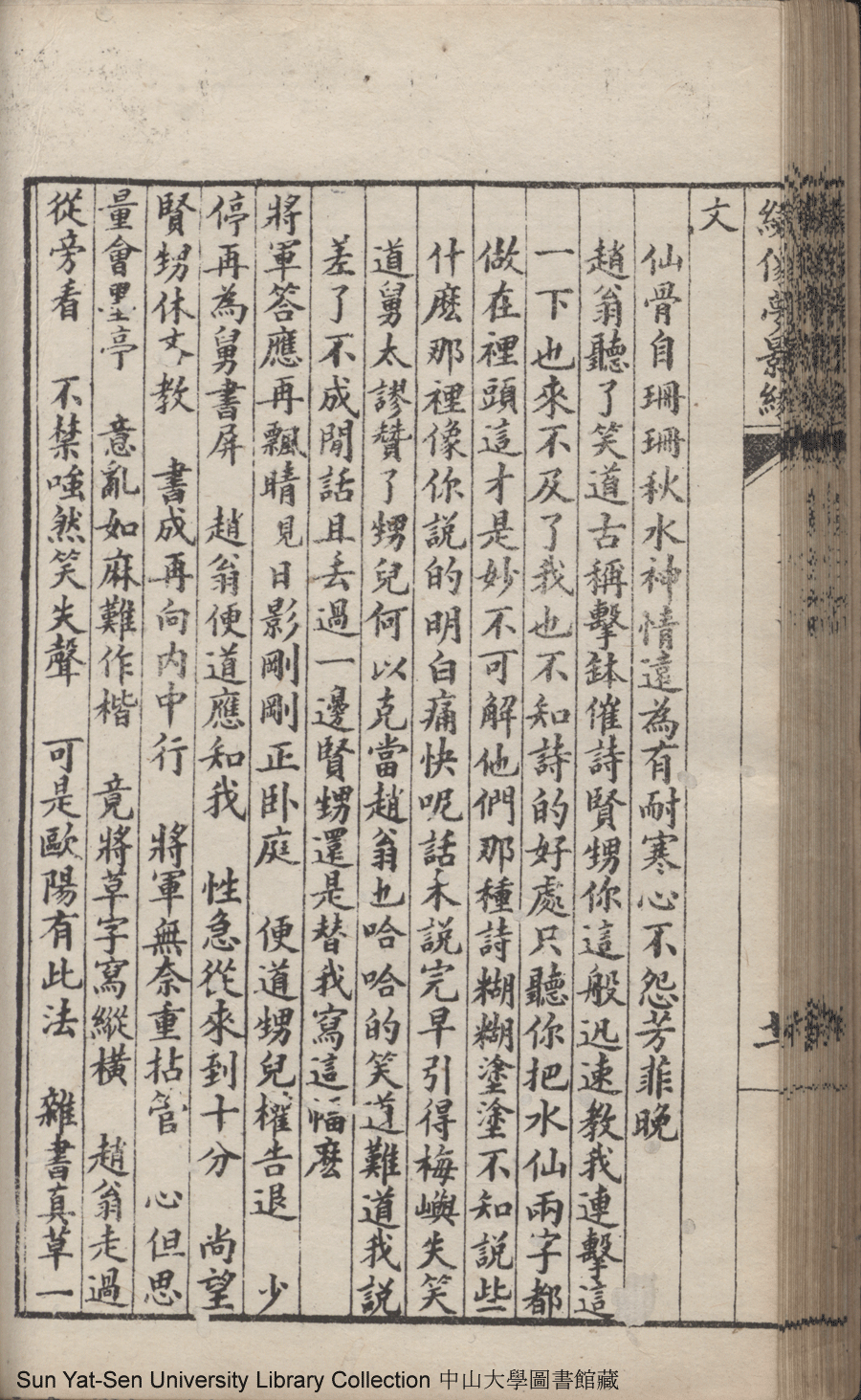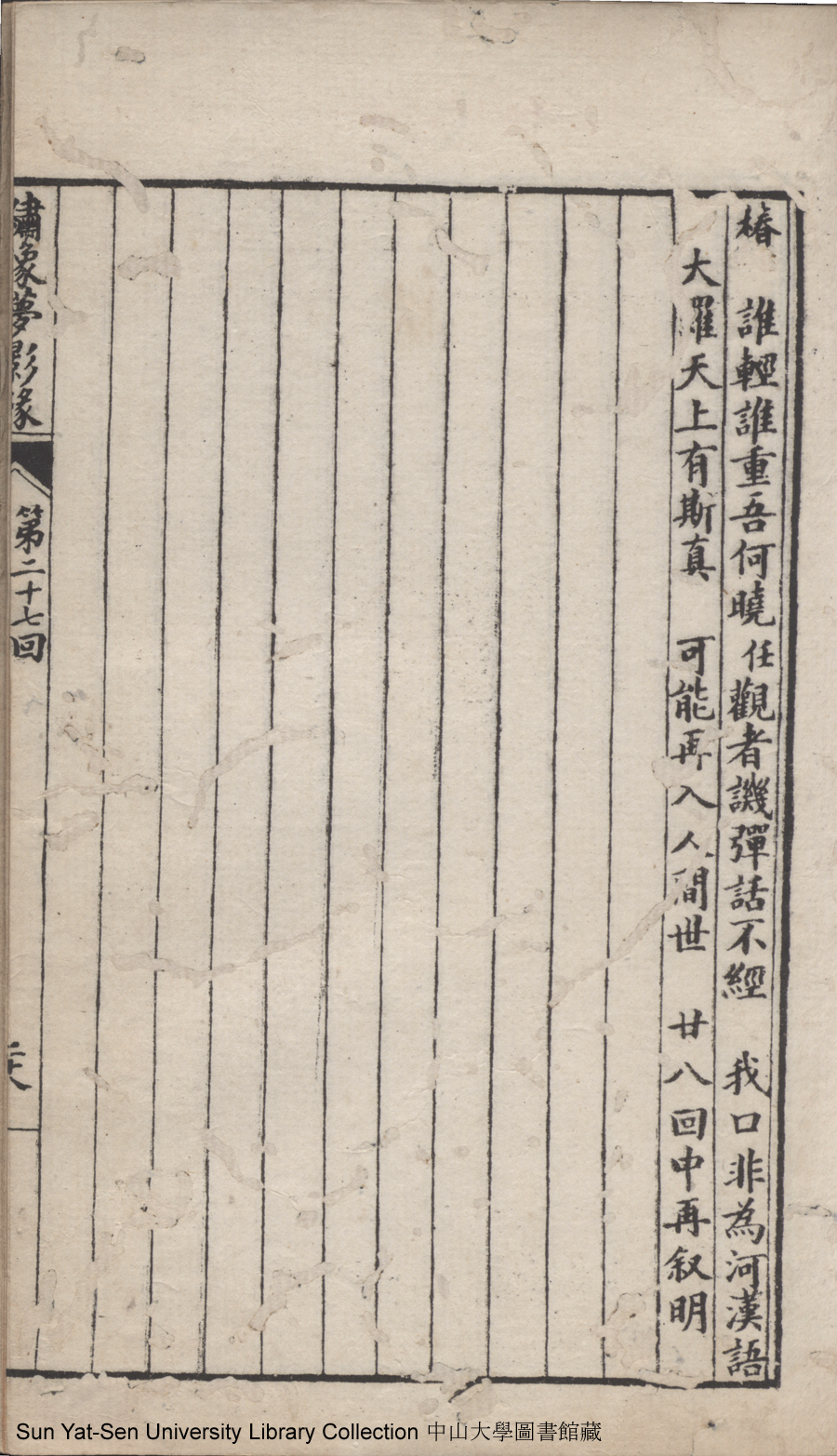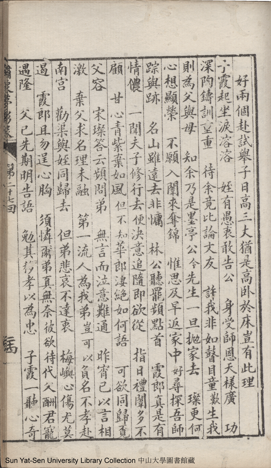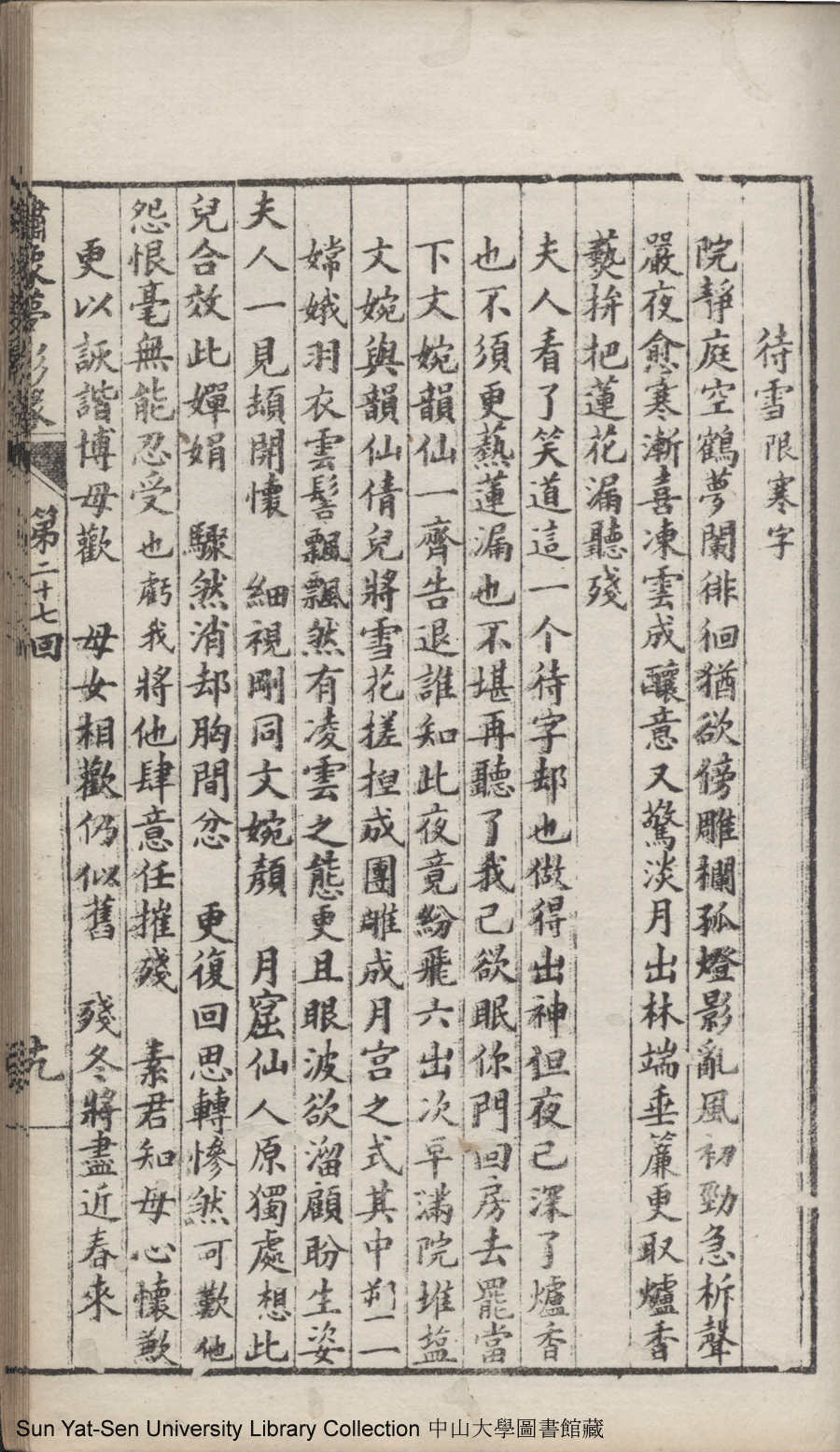 | 第二十七回 有求而應有感而通降下情天一鶴 以理相推以心相印開來性海雙津 Di er shi qi hui You qiu er ying you gan er tong jiang xia qing tian yi he Yi li xiang tui yi xin xiang yin kai lai xing hai shuang jin 文﹕彈詞 Wen: Tan ci 鄭貞華﹐號爨下生﹐字蕉卿﹐又名澹若 Zheng Zhenhua, hao: Cuanxiasheng, zi: Jiaoqing 繡像夢影緣:四十八回(清鄭貞華撰) Xiu xiang Meng ying yuan: si shi ba hui (by Zheng Zhenhua, Qing Dynasty) , pp. 第二十七回10a,第二十七回10b,第二十七回11a,第二十七回11b,第二十七回12a,第二十七回12b,第二十七回13a,第二十七回13b,第二十七回14a,第二十七回14b,第二十七回15a,第二十七回15b,第二十七回16a,第二十七回16b,第二十七回17a,第二十七回17b,第二十七回18a,第二十七回18b,第二十七回19a,第二十七回19b,第二十七回1a,第二十七回1b,第二十七回20a,第二十七回20b,第二十七回21a,第二十七回21b,第二十七回22a,第二十七回22b,第二十七回23a,第二十七回23b,第二十七回24a,第二十七回24b,第二十七回25a,第二十七回25b,第二十七回26a,第二十七回26b,第二十七回27a,第二十七回27b,第二十七回28a,第二十七回28b,第二十七回2a,第二十七回2b,第二十七回3a,第二十七回3b,第二十七回4a,第二十七回4b,第二十七回5a,第二十七回5b,第二十七回6a,第二十七回6b,第二十七回7a,第二十七回7b,第二十七回8a,第二十七回8b,第二十七回9a,第二十七回9b. |
