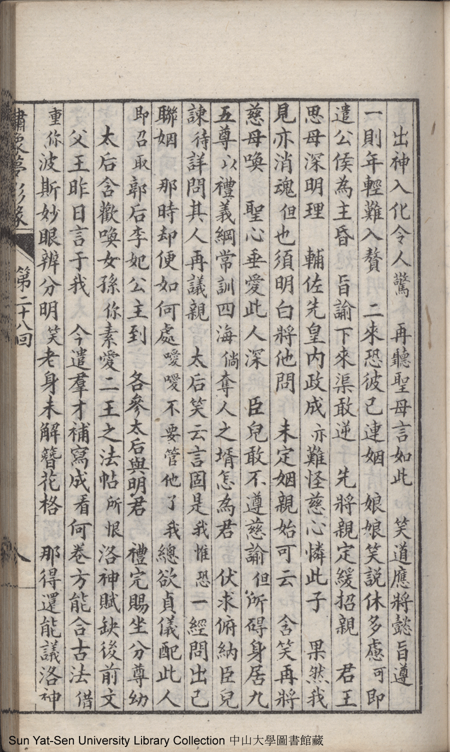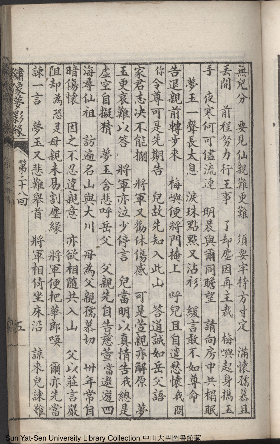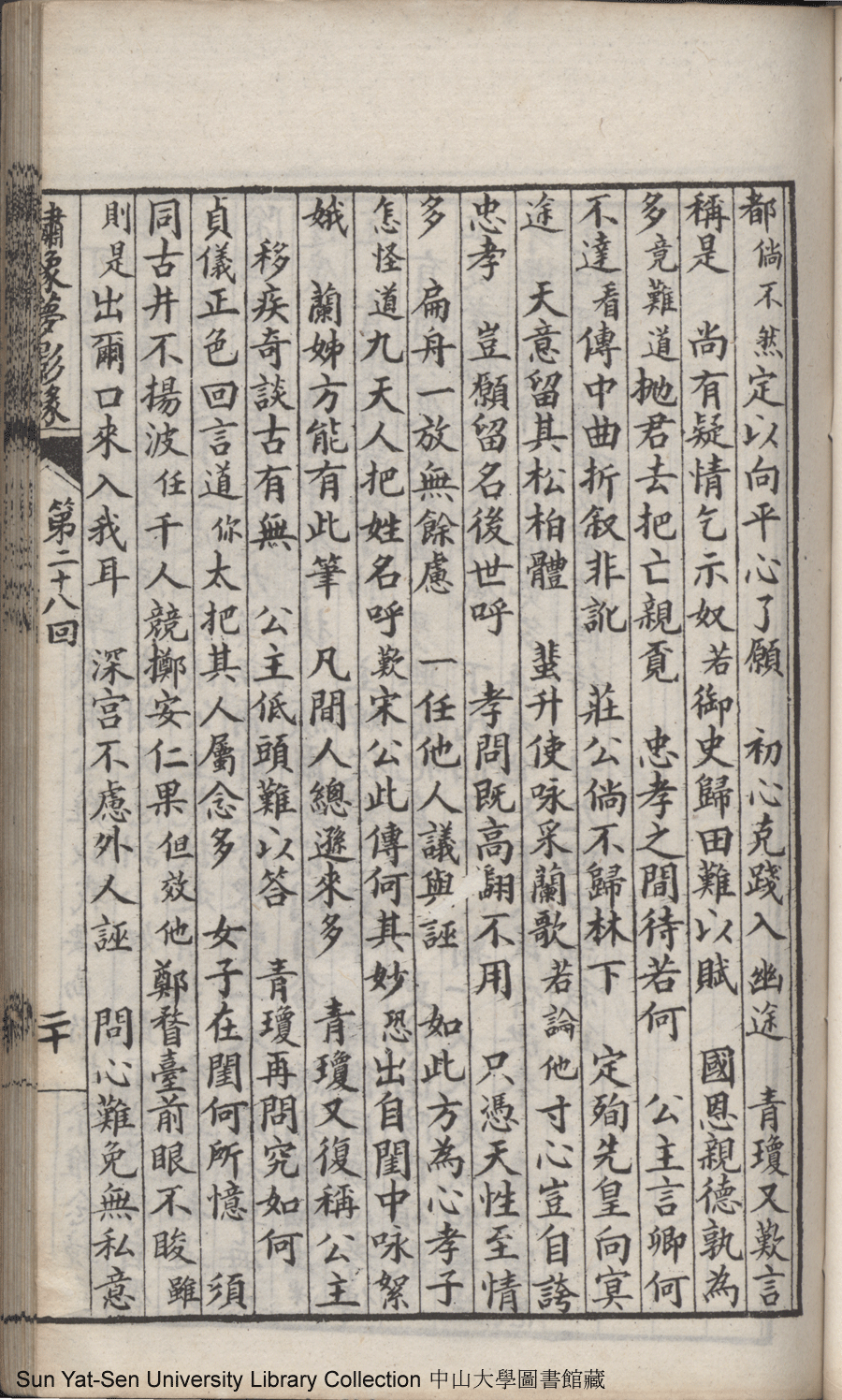 | 第二十八回 勉於承志繼前芬金榜豔題名 淡極生情憶宿契綺宮交朂操 Di er shi ba hui Mian yu cheng zhi ji qian fen jin bang yan ti ming Dan ji sheng qing yi su qi qi gong jiao xu cao 文﹕彈詞 Wen: Tan ci 鄭貞華﹐號爨下生﹐字蕉卿﹐又名澹若 Zheng Zhenhua, hao: Cuanxiasheng, zi: Jiaoqing 繡像夢影緣:四十八回(清鄭貞華撰) Xiu xiang Meng ying yuan: si shi ba hui (by Zheng Zhenhua, Qing Dynasty) , pp. 第二十八回10a,第二十八回10b,第二十八回11a,第二十八回11b,第二十八回12a,第二十八回12b,第二十八回13a,第二十八回13b,第二十八回14a,第二十八回14b,第二十八回15a,第二十八回15b,第二十八回16a,第二十八回16b,第二十八回17a,第二十八回17b,第二十八回18a,第二十八回18b,第二十八回19a,第二十八回19b,第二十八回1a,第二十八回1b,第二十八回20a,第二十八回20b,第二十八回2a,第二十八回2b,第二十八回3a,第二十八回3b,第二十八回4a,第二十八回4b,第二十八回5a,第二十八回5b,第二十八回6a,第二十八回6b,第二十八回7a,第二十八回7b,第二十八回8a,第二十八回8b,第二十八回9a,第二十八回9b. |