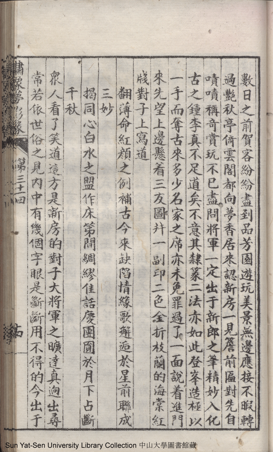 | 第三十一回 暗作蹇修苦誓貞心撮合無雙佳偶 別開生面喜逃惡例圓成第一奇緣 Di san shi yi hui An zuo jian xiu ku shi zhen xin cuo he wu shuang jia ou Bie kai sheng mian xi tao e li yuan cheng di yi qi yuan 文﹕彈詞 Wen: Tan ci 鄭貞華﹐號爨下生﹐字蕉卿﹐又名澹若 Zheng Zhenhua, hao: Cuanxiasheng, zi: Jiaoqing 繡像夢影緣:四十八回(清鄭貞華撰) Xiu xiang Meng ying yuan: si shi ba hui (by Zheng Zhenhua, Qing Dynasty) , pp. 第三十一回10a,第三十一回10b,第三十一回11a,第三十一回11b,第三十一回12a,第三十一回12b,第三十一回13a,第三十一回13b,第三十一回14a,第三十一回14b,第三十一回15a,第三十一回15b,第三十一回16a,第三十一回16b,第三十一回17a,第三十一回17b,第三十一回18a,第三十一回18b,第三十一回19a,第三十一回19b,第三十一回1a,第三十一回1b,第三十一回20a,第三十一回20b,第三十一回21a,第三十一回21b,第三十一回22a,第三十一回22b,第三十一回23a,第三十一回23b,第三十一回24a,第三十一回24b,第三十一回25a,第三十一回25b,第三十一回26a,第三十一回26b,第三十一回27a,第三十一回27b,第三十一回28a,第三十一回28b,第三十一回29a,第三十一回29b,第三十一回2a,第三十一回2b,第三十一回3a,第三十一回3b,第三十一回4a,第三十一回4b,第三十一回5a,第三十一回5b,第三十一回6a,第三十一回6b,第三十一回7a,第三十一回7b,第三十一回8a,第三十一回8b,第三十一回9a,第三十一回9b. |