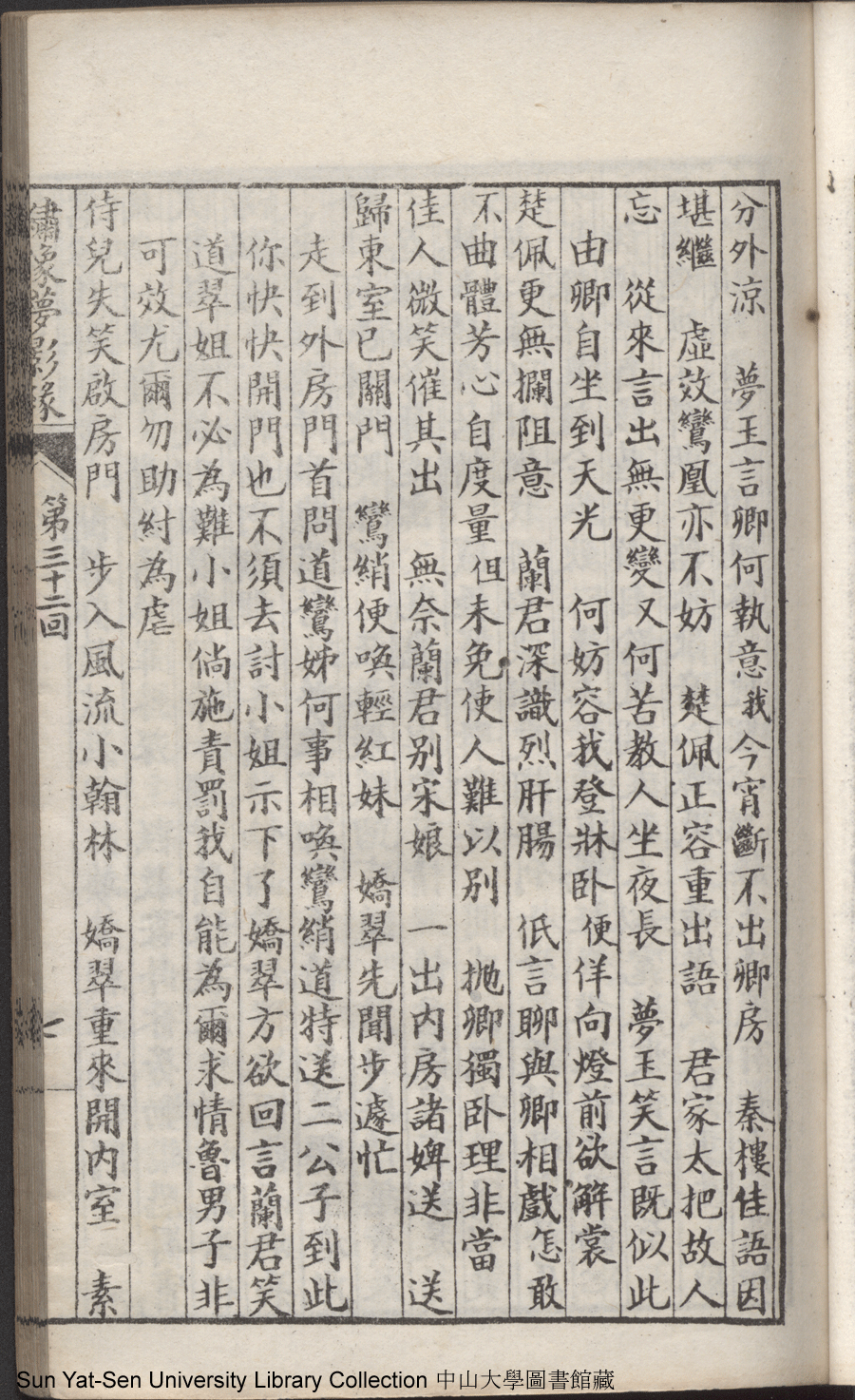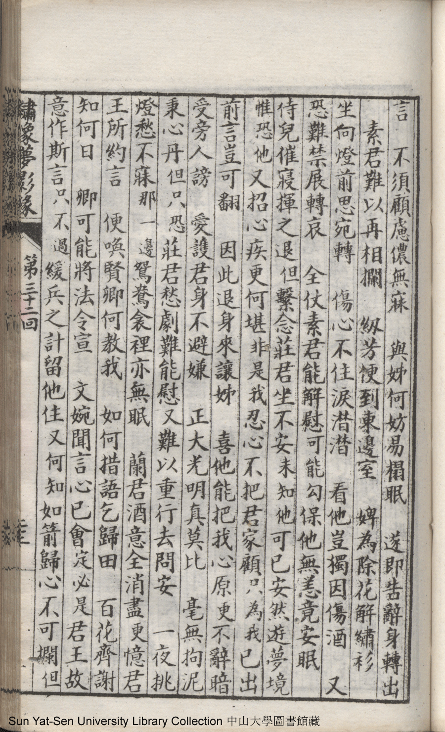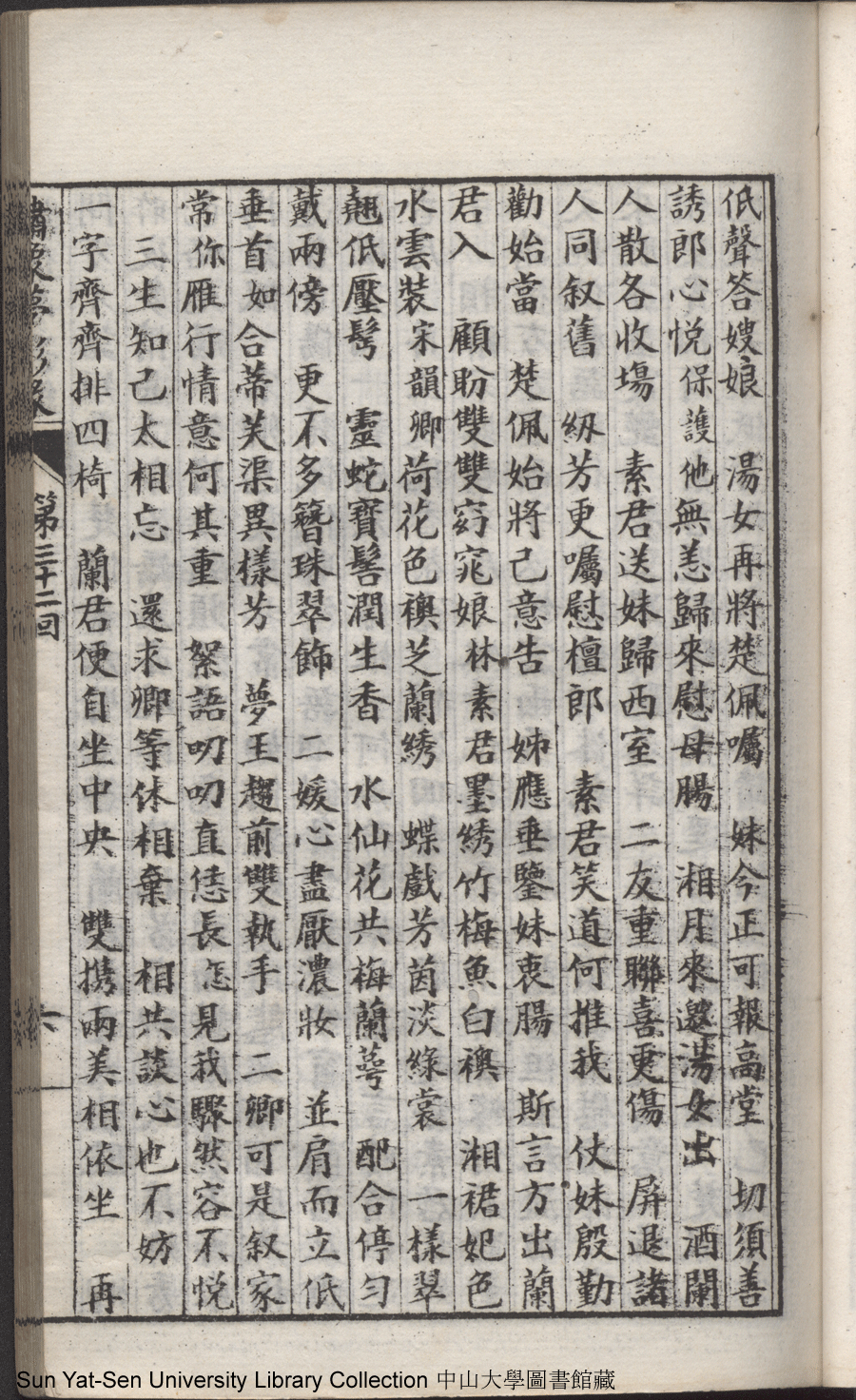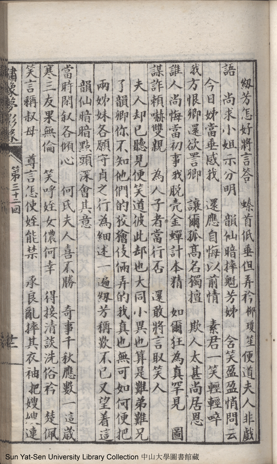 | 第三十二回 燕婉情深萬斛總難消一點烏私 白雲望斷重霄空移怨千枝紅豔 Di san shi er hui Yan wan qing shen wan hu zong nan xiao yi dian wu si Bai yun wang duan chong xiao kong yi yuan qian zhi hong yan 文﹕彈詞 Wen: Tan ci 鄭貞華﹐號爨下生﹐字蕉卿﹐又名澹若 Zheng Zhenhua, hao: Cuanxiasheng, zi: Jiaoqing 繡像夢影緣:四十八回(清鄭貞華撰) Xiu xiang Meng ying yuan: si shi ba hui (by Zheng Zhenhua, Qing Dynasty) , pp. 第三十二回10a,第三十二回10b,第三十二回11a,第三十二回11b,第三十二回12a,第三十二回12b,第三十二回13a,第三十二回13b,第三十二回14a,第三十二回14b,第三十二回15a,第三十二回15b,第三十二回16a,第三十二回16b,第三十二回17a,第三十二回17b,第三十二回18a,第三十二回18b,第三十二回19a,第三十二回19b,第三十二回1a,第三十二回1b,第三十二回20a,第三十二回20b,第三十二回21a,第三十二回21b,第三十二回22a,第三十二回22b,第三十二回23a,第三十二回23b,第三十二回24a,第三十二回24b,第三十二回25a,第三十二回25b,第三十二回26a,第三十二回26b,第三十二回27a,第三十二回27b,第三十二回28a,第三十二回28b,第三十二回2a,第三十二回2b,第三十二回3a,第三十二回3b,第三十二回4a,第三十二回4b,第三十二回5a,第三十二回5b,第三十二回6a,第三十二回6b,第三十二回7a,第三十二回7b,第三十二回8a,第三十二回8b,第三十二回9a,第三十二回9b. |