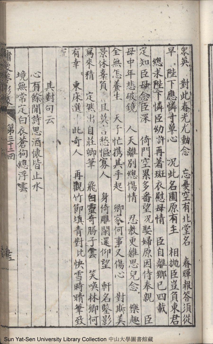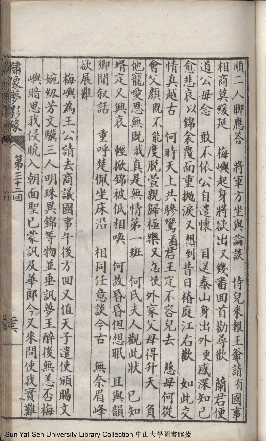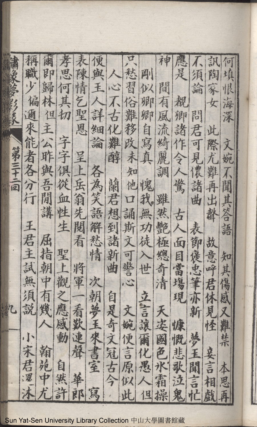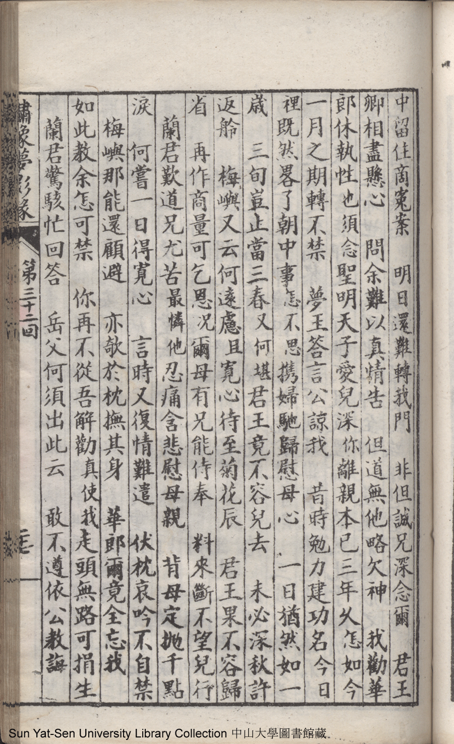 | 第三十二回 燕婉情深萬斛總難消一點烏私 白雲望斷重霄空移怨千枝紅豔 Di san shi er hui Yan wan qing shen wan hu zong nan xiao yi dian wu si Bai yun wang duan chong xiao kong yi yuan qian zhi hong yan 文﹕彈詞 Wen: Tan ci 鄭貞華﹐號爨下生﹐字蕉卿﹐又名澹若 Zheng Zhenhua, hao: Cuanxiasheng, zi: Jiaoqing 繡像夢影緣:四十八回(清鄭貞華撰) Xiu xiang Meng ying yuan: si shi ba hui (by Zheng Zhenhua, Qing Dynasty) , pp. 第三十二回10a,第三十二回10b,第三十二回11a,第三十二回11b,第三十二回12a,第三十二回12b,第三十二回13a,第三十二回13b,第三十二回14a,第三十二回14b,第三十二回15a,第三十二回15b,第三十二回16a,第三十二回16b,第三十二回17a,第三十二回17b,第三十二回18a,第三十二回18b,第三十二回19a,第三十二回19b,第三十二回1a,第三十二回1b,第三十二回20a,第三十二回20b,第三十二回21a,第三十二回21b,第三十二回22a,第三十二回22b,第三十二回23a,第三十二回23b,第三十二回24a,第三十二回24b,第三十二回25a,第三十二回25b,第三十二回26a,第三十二回26b,第三十二回27a,第三十二回27b,第三十二回28a,第三十二回28b,第三十二回2a,第三十二回2b,第三十二回3a,第三十二回3b,第三十二回4a,第三十二回4b,第三十二回5a,第三十二回5b,第三十二回6a,第三十二回6b,第三十二回7a,第三十二回7b,第三十二回8a,第三十二回8b,第三十二回9a,第三十二回9b. |