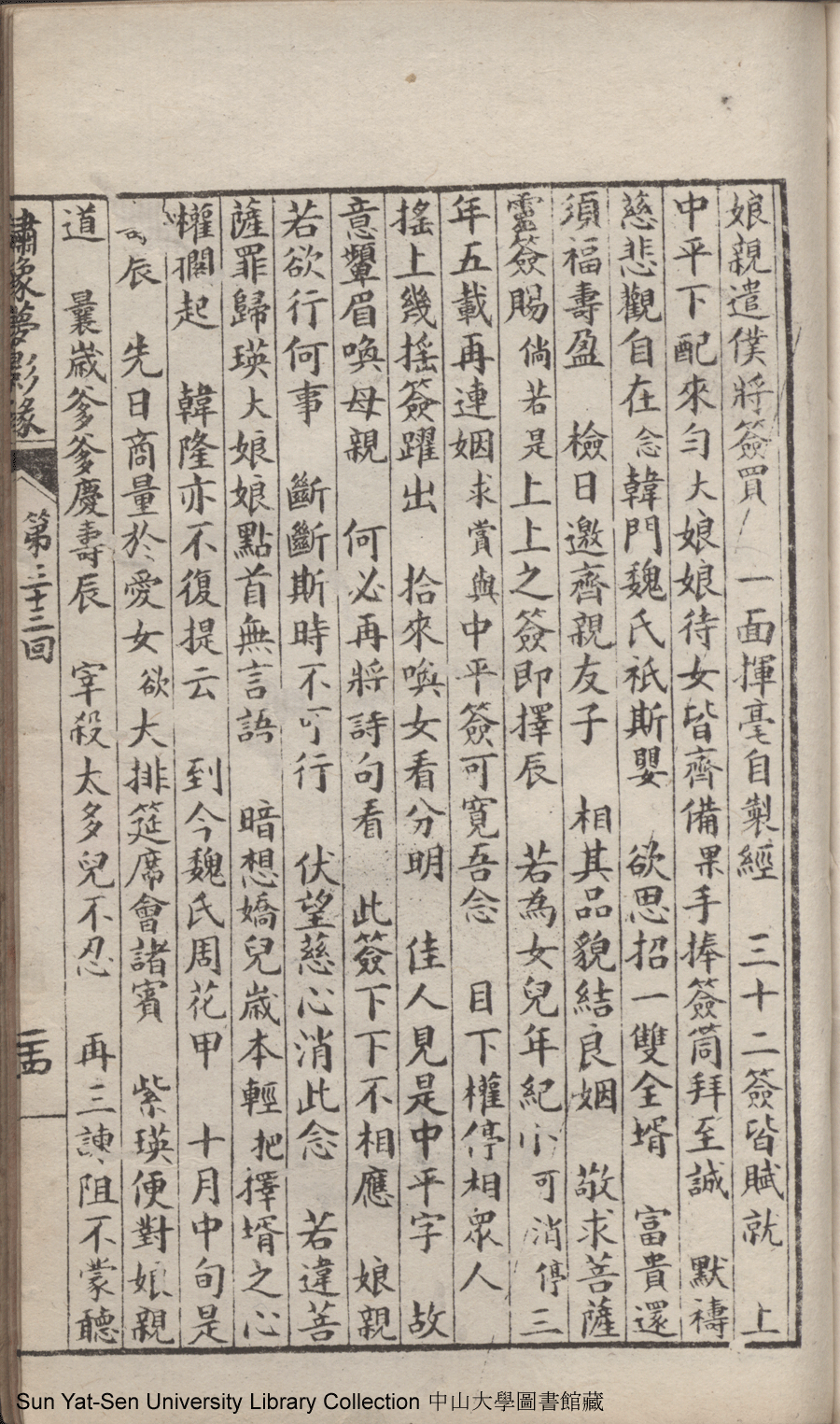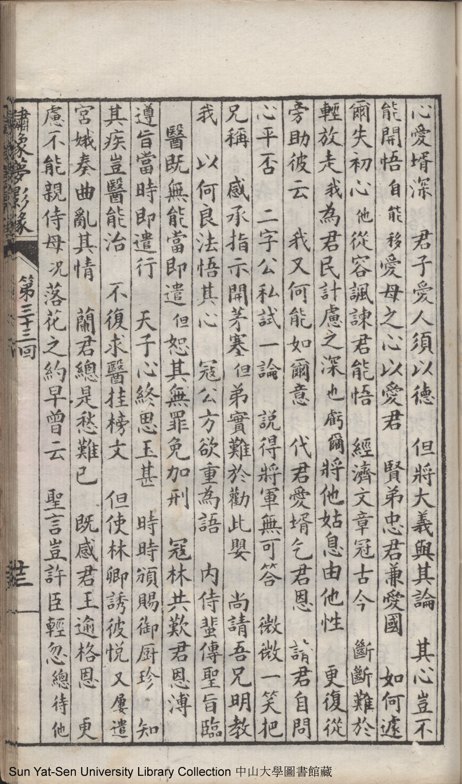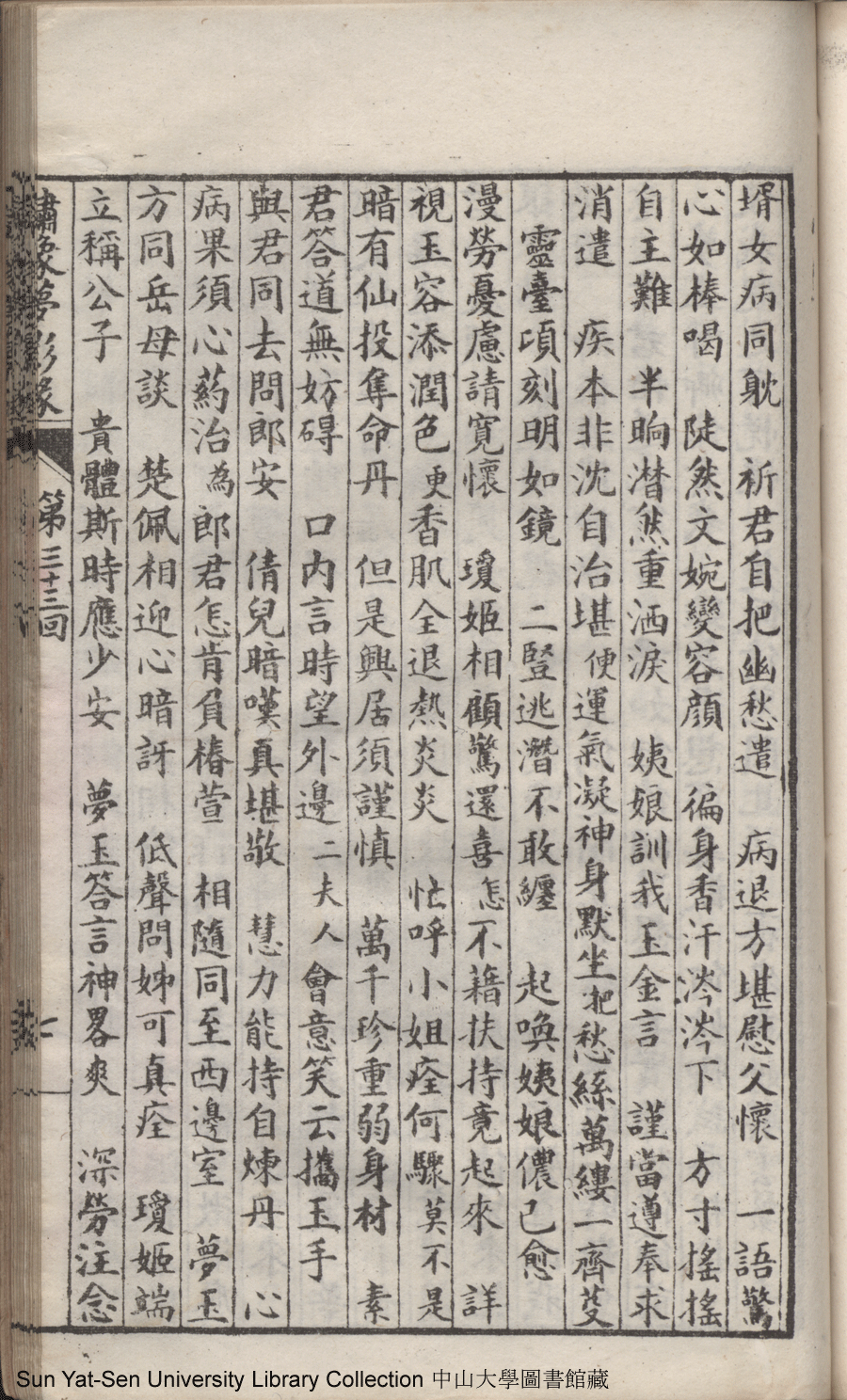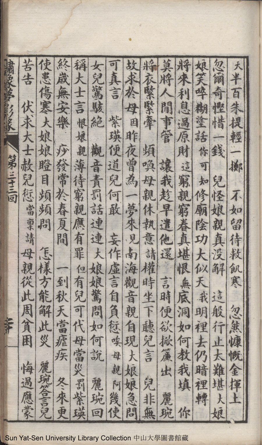 | 第三十三回 阻歸省難回聖意思親病入深秋 辨修行明剖婆心奉佛彈成別調 Di san shi san hui Zu gui xing nan hui sheng yi si qin bing ru shen qiu Bian xiu xing ming pou po xin feng fo tan cheng bie diao 文﹕彈詞 Wen: Tan ci 鄭貞華﹐號爨下生﹐字蕉卿﹐又名澹若 Zheng Zhenhua, hao: Cuanxiasheng, zi: Jiaoqing 繡像夢影緣:四十八回(清鄭貞華撰) Xiu xiang Meng ying yuan: si shi ba hui (by Zheng Zhenhua, Qing Dynasty) , pp. 第三十三回10a,第三十三回10b,第三十三回11a,第三十三回11b,第三十三回12a,第三十三回12b,第三十三回13a,第三十三回13b,第三十三回14a,第三十三回14b,第三十三回15a,第三十三回15b,第三十三回16a,第三十三回16b,第三十三回17a,第三十三回17b,第三十三回18a,第三十三回18b,第三十三回19a,第三十三回19b,第三十三回1a,第三十三回1b,第三十三回20a,第三十三回20b,第三十三回21a,第三十三回21b,第三十三回22a,第三十三回22b,第三十三回23a,第三十三回23b,第三十三回24a,第三十三回24b,第三十三回25a,第三十三回25b,第三十三回2a,第三十三回2b,第三十三回3a,第三十三回3b,第三十三回4a,第三十三回4b,第三十三回5a,第三十三回5b,第三十三回6a,第三十三回6b,第三十三回7a,第三十三回7b,第三十三回8a,第三十三回8b,第三十三回9a,第三十三回9b. |