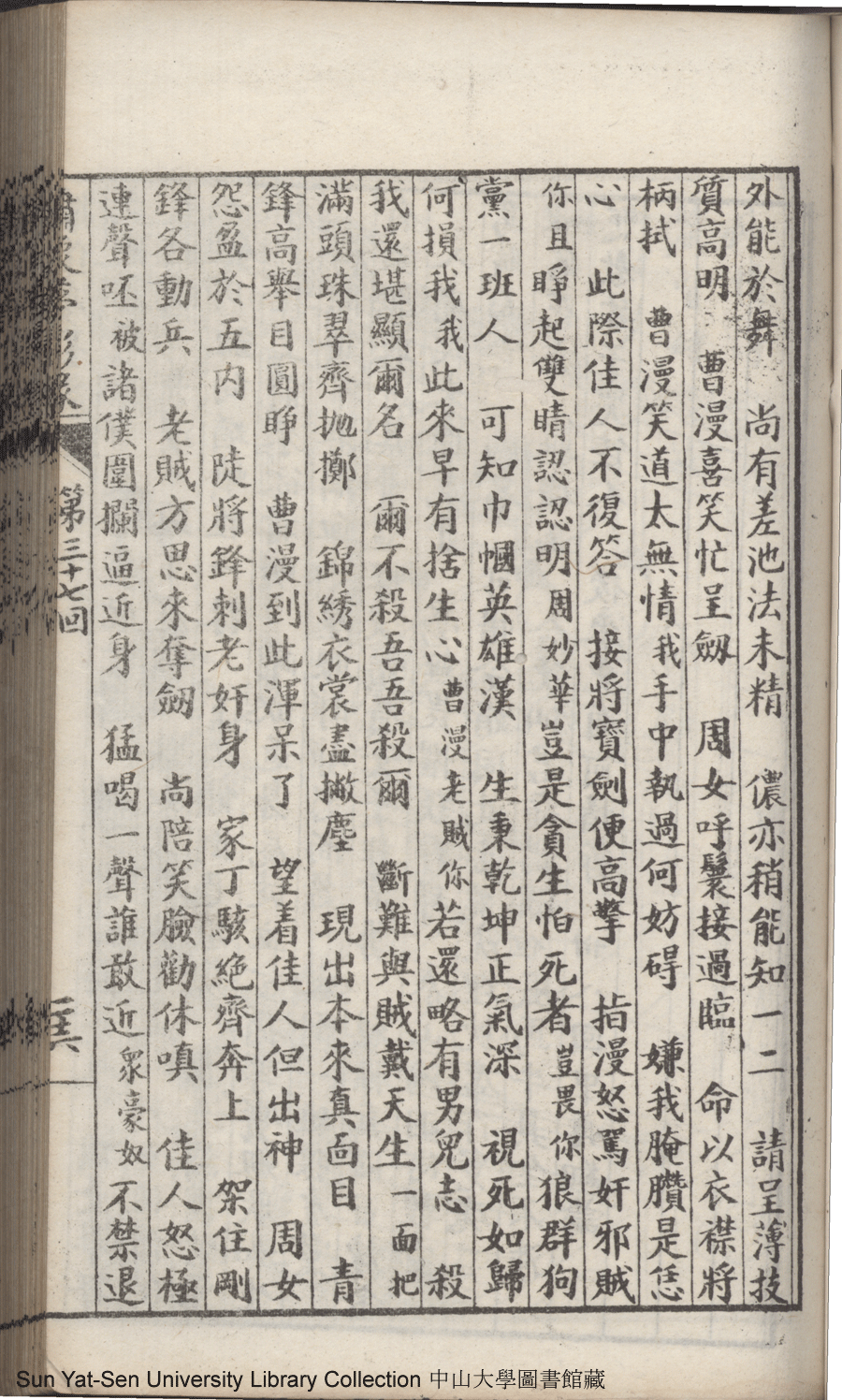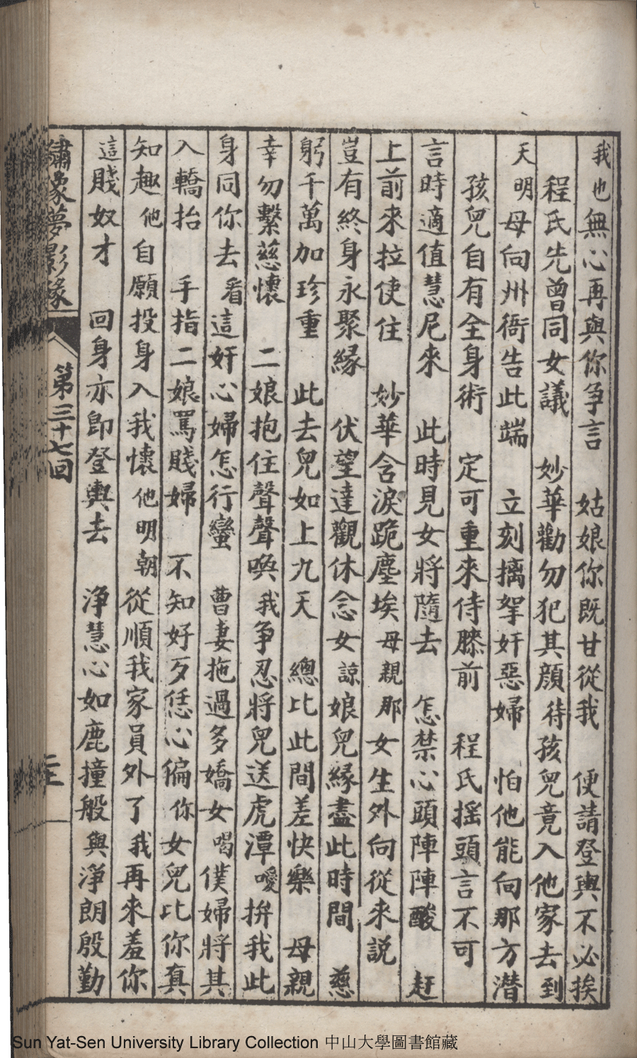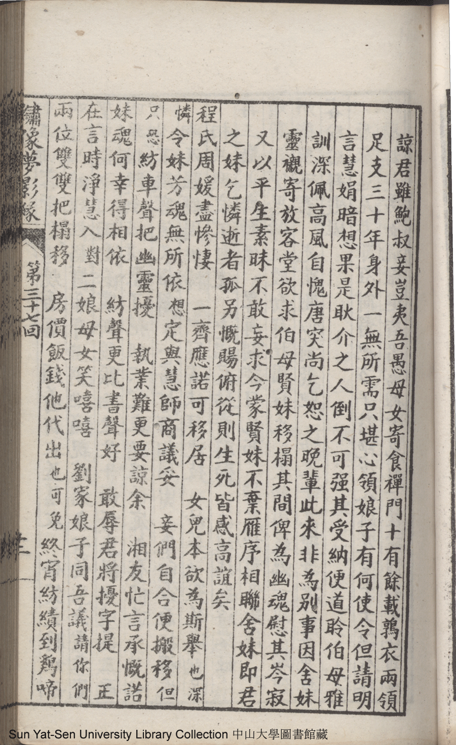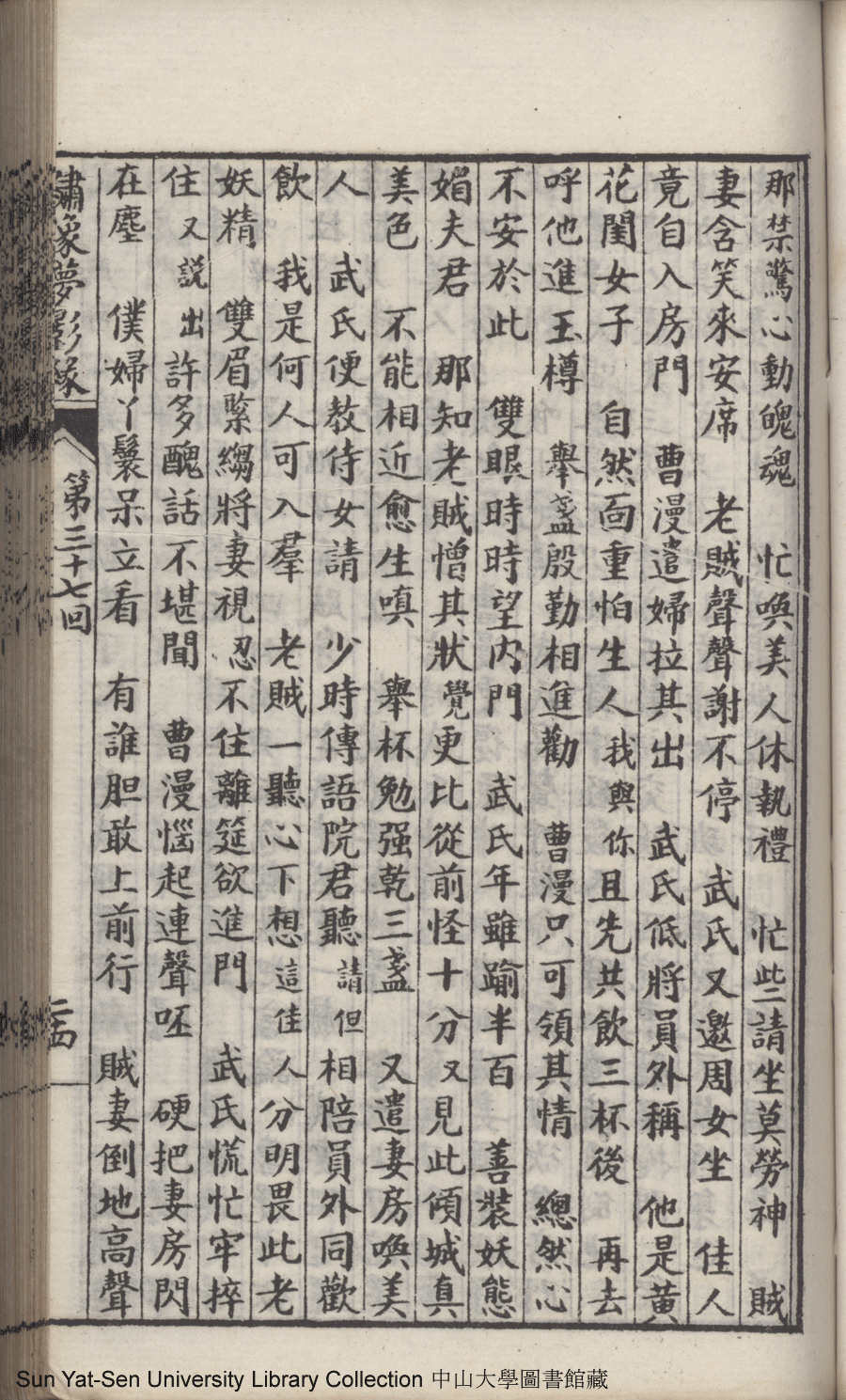 | 第三十七回 冒作仙家狡獪術寬其生者念 投於虎穴烈英風褫却老奸魂 Di san shi qi hui Mao zuo xian jia jiao kuai shu kuan qi sheng zhe nian Tou yu hu xue lie ying feng chi que lao jian hun 文﹕彈詞 Wen: Tan ci 鄭貞華﹐號爨下生﹐字蕉卿﹐又名澹若 Zheng Zhenhua, hao: Cuanxiasheng, zi: Jiaoqing 繡像夢影緣:四十八回(清鄭貞華撰) Xiu xiang Meng ying yuan: si shi ba hui (by Zheng Zhenhua, Qing Dynasty) , pp. 第三十七回10a,第三十七回10b,第三十七回11a,第三十七回11b,第三十七回12a,第三十七回12b,第三十七回13a,第三十七回13b,第三十七回14a,第三十七回14b,第三十七回15a,第三十七回15b,第三十七回16a,第三十七回16b,第三十七回17a,第三十七回17b,第三十七回18a,第三十七回18b,第三十七回19a,第三十七回19b,第三十七回1a,第三十七回1b,第三十七回20a,第三十七回20b,第三十七回21a,第三十七回21b,第三十七回22a,第三十七回22b,第三十七回23a,第三十七回23b,第三十七回24a,第三十七回24b,第三十七回25a,第三十七回25b,第三十七回26a,第三十七回26b,第三十七回2a,第三十七回2b,第三十七回3a,第三十七回3b,第三十七回4a,第三十七回4b,第三十七回5a,第三十七回5b,第三十七回6a,第三十七回6b,第三十七回7a,第三十七回7b,第三十七回8a,第三十七回8b,第三十七回9a,第三十七回9b. |