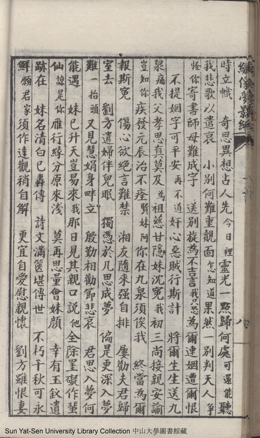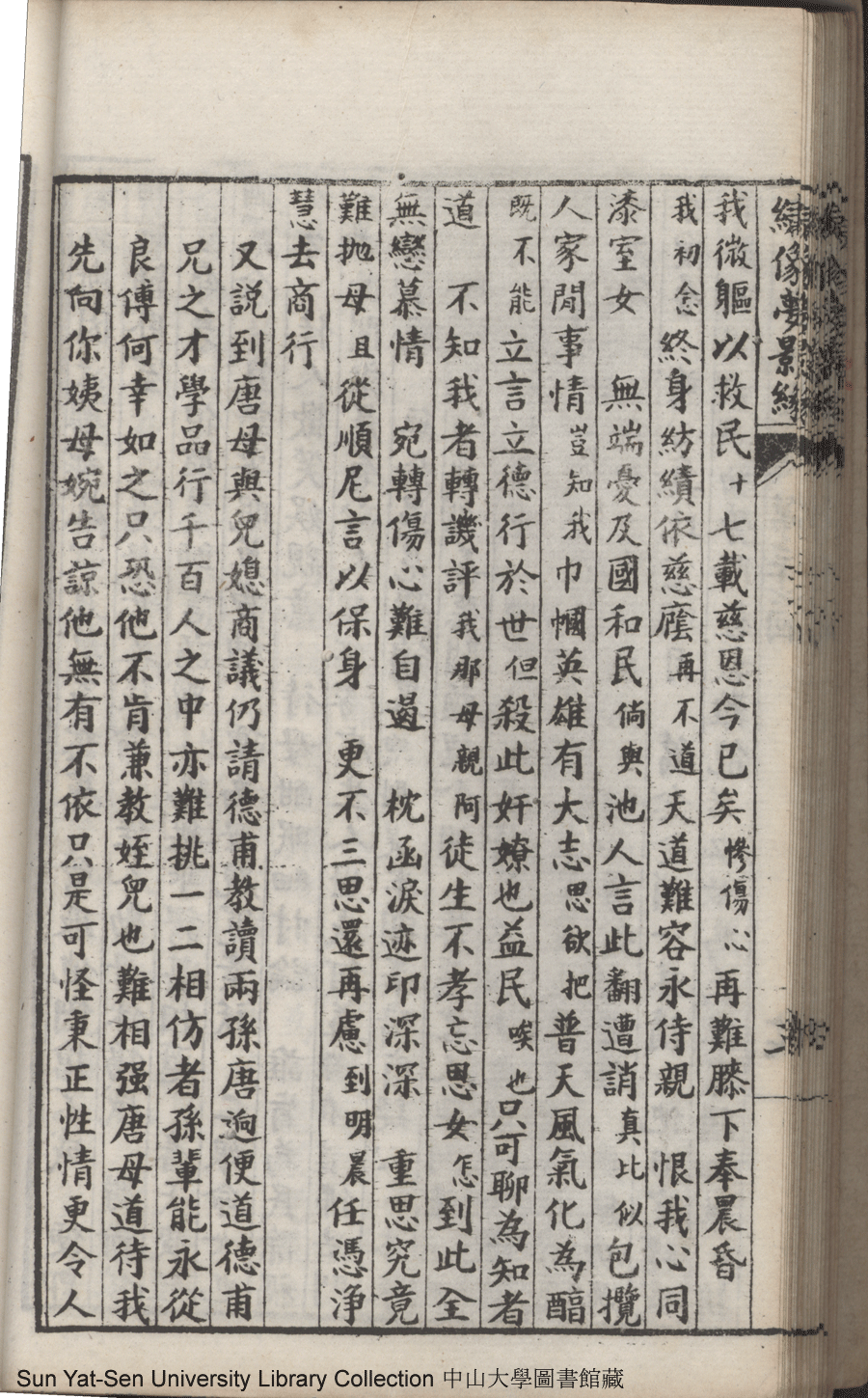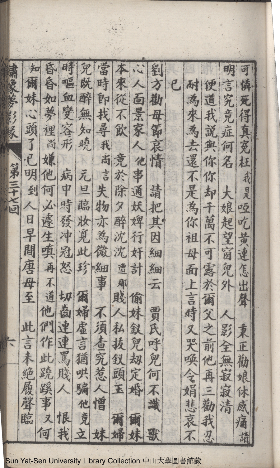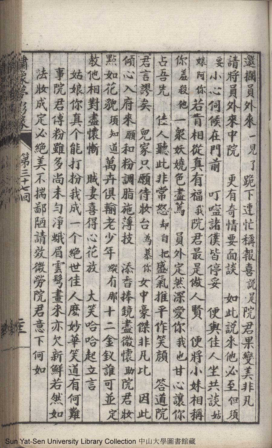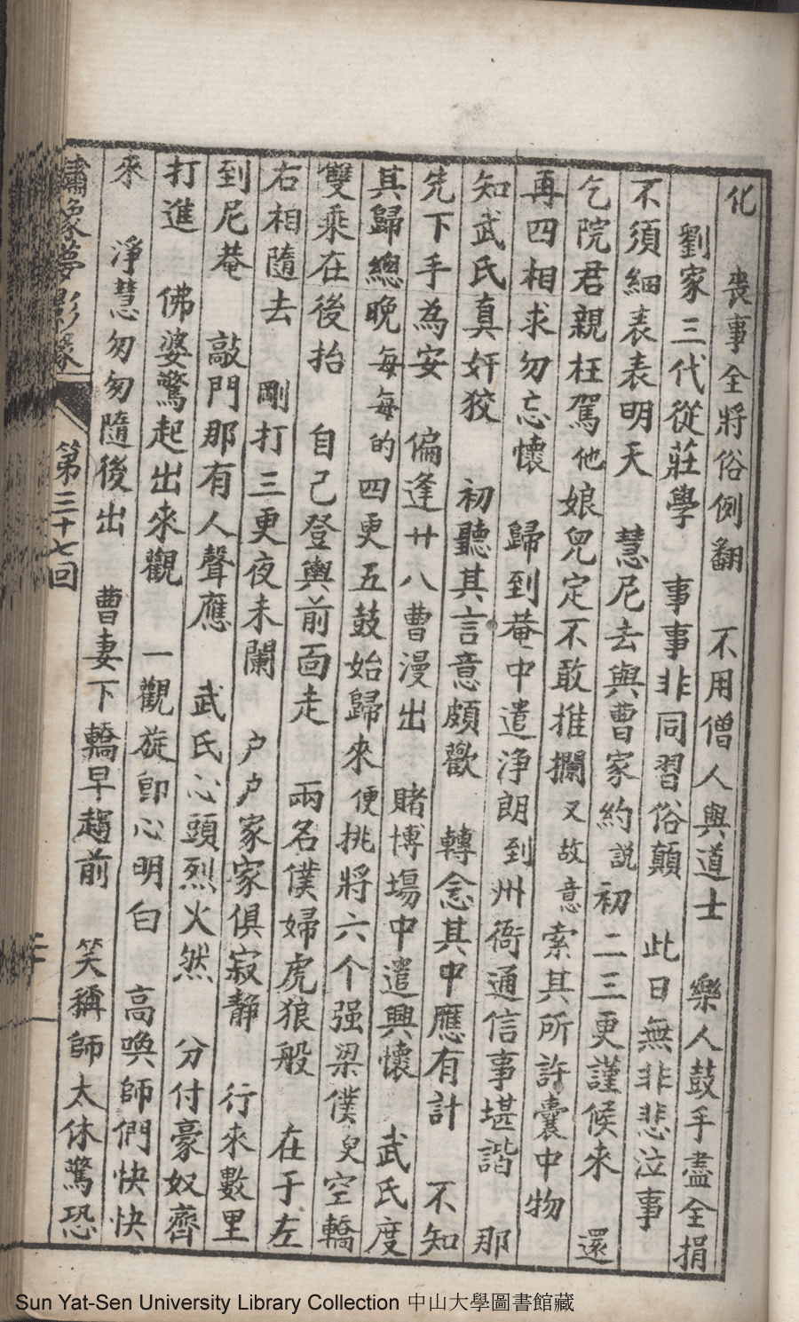 | 第三十七回 冒作仙家狡獪術寬其生者念 投於虎穴烈英風褫却老奸魂 Di san shi qi hui Mao zuo xian jia jiao kuai shu kuan qi sheng zhe nian Tou yu hu xue lie ying feng chi que lao jian hun 文﹕彈詞 Wen: Tan ci 鄭貞華﹐號爨下生﹐字蕉卿﹐又名澹若 Zheng Zhenhua, hao: Cuanxiasheng, zi: Jiaoqing 繡像夢影緣:四十八回(清鄭貞華撰) Xiu xiang Meng ying yuan: si shi ba hui (by Zheng Zhenhua, Qing Dynasty) , pp. 第三十七回10a,第三十七回10b,第三十七回11a,第三十七回11b,第三十七回12a,第三十七回12b,第三十七回13a,第三十七回13b,第三十七回14a,第三十七回14b,第三十七回15a,第三十七回15b,第三十七回16a,第三十七回16b,第三十七回17a,第三十七回17b,第三十七回18a,第三十七回18b,第三十七回19a,第三十七回19b,第三十七回1a,第三十七回1b,第三十七回20a,第三十七回20b,第三十七回21a,第三十七回21b,第三十七回22a,第三十七回22b,第三十七回23a,第三十七回23b,第三十七回24a,第三十七回24b,第三十七回25a,第三十七回25b,第三十七回26a,第三十七回26b,第三十七回2a,第三十七回2b,第三十七回3a,第三十七回3b,第三十七回4a,第三十七回4b,第三十七回5a,第三十七回5b,第三十七回6a,第三十七回6b,第三十七回7a,第三十七回7b,第三十七回8a,第三十七回8b,第三十七回9a,第三十七回9b. |