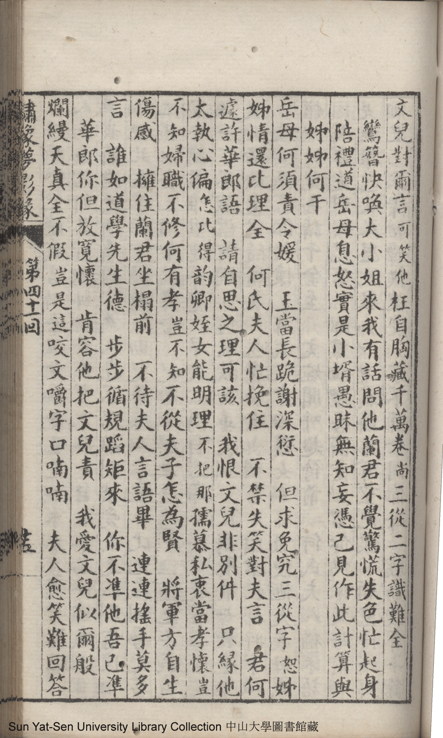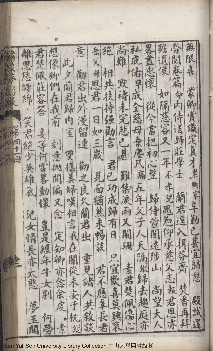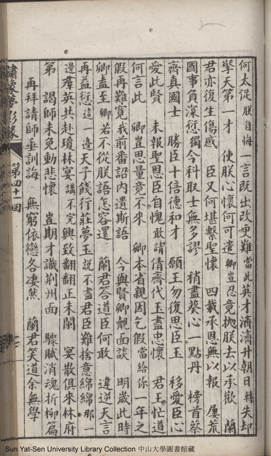 | 第四十一回 衡文秉巨識三千俊彥但選賢良 衣錦賜榮歸五百英雄同供祖帳 Di si shi yi hui Heng wen bing ju shi san qian jun yan dan xuan xian liang Yi jin ci rong gui wu bai ying xiong tong gong zu zhang 文﹕彈詞 Wen: Tan ci 鄭貞華﹐號爨下生﹐字蕉卿﹐又名澹若 Zheng Zhenhua, hao: Cuanxiasheng, zi: Jiaoqing 繡像夢影緣:四十八回(清鄭貞華撰) Xiu xiang Meng ying yuan: si shi ba hui (by Zheng Zhenhua, Qing Dynasty) , pp. 第四十一回10a,第四十一回10b,第四十一回11a,第四十一回11b,第四十一回12a,第四十一回12b,第四十一回13a,第四十一回13b,第四十一回14a,第四十一回14b,第四十一回15a,第四十一回15b,第四十一回16a,第四十一回16b,第四十一回17a,第四十一回17b,第四十一回18a,第四十一回18b,第四十一回19a,第四十一回19b,第四十一回1a,第四十一回1b,第四十一回20a,第四十一回20b,第四十一回21a,第四十一回21b,第四十一回2a,第四十一回2b,第四十一回3a,第四十一回3b,第四十一回4a,第四十一回4b,第四十一回5a,第四十一回5b,第四十一回6a,第四十一回6b,第四十一回7a,第四十一回7b,第四十一回8a,第四十一回8b,第四十一回9a,第四十一回9b. |