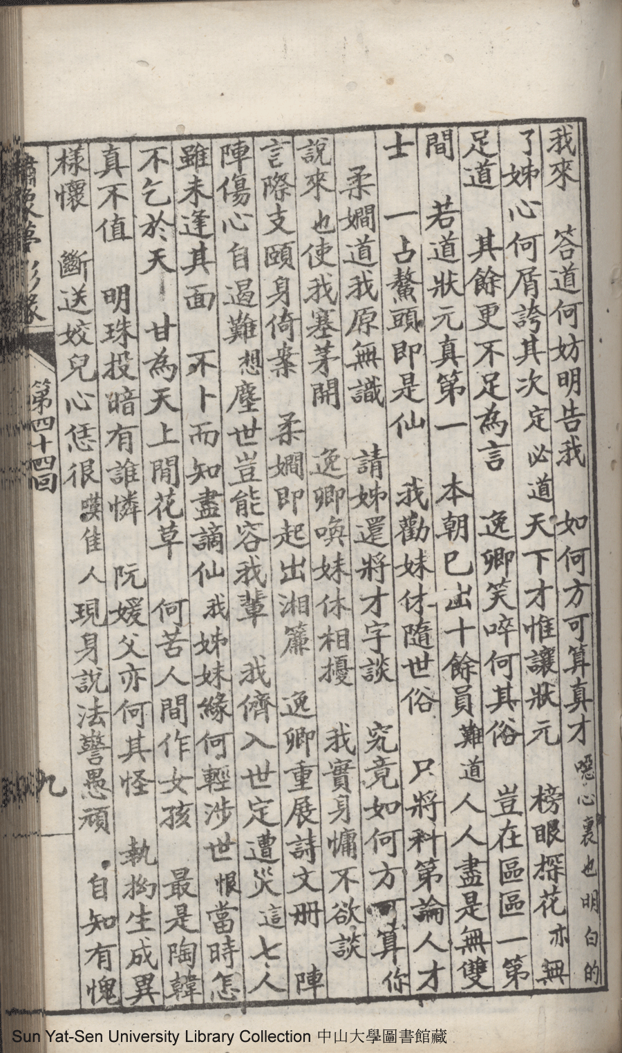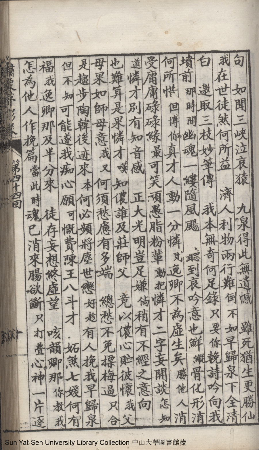 | 第四十四回 甘爲薄命人秉癡念竟因知己死 未了傷心債弔幽貞更作斷腸吟 Di si shi si hui Gan wei bo ming ren bing chi nian jing yin zhi ji si Wei liao shang xin zhai diao you zhen geng zuo duan chang yin 文﹕彈詞 Wen: Tan ci 鄭貞華﹐號爨下生﹐字蕉卿﹐又名澹若 Zheng Zhenhua, hao: Cuanxiasheng, zi: Jiaoqing 繡像夢影緣:四十八回(清鄭貞華撰) Xiu xiang Meng ying yuan: si shi ba hui (by Zheng Zhenhua, Qing Dynasty) , pp. 第四十四回10a,第四十四回10b,第四十四回11a,第四十四回11b,第四十四回12a,第四十四回12b,第四十四回13a,第四十四回13b,第四十四回14a,第四十四回14b,第四十四回15a,第四十四回15b,第四十四回16a,第四十四回16b,第四十四回1a,第四十四回1b,第四十四回2a,第四十四回2b,第四十四回3a,第四十四回3b,第四十四回4a,第四十四回4b,第四十四回5a,第四十四回5b,第四十四回6a,第四十四回6b,第四十四回7a,第四十四回7b,第四十四回8a,第四十四回8b,第四十四回9a,第四十四回9b. |