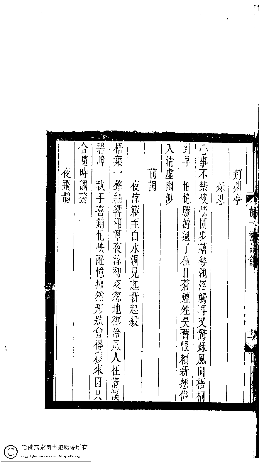 | 夜飛鵲 : 七夕 Ye fei que : Qi xi 詞 ci 周詒蘩﹐字茹馨 Zhou Yifan, zi: Ruxin 小檀欒室彙刻閨秀詞﹕十集一百種一百卷(清徐乃昌輯) 靜一齋詩餘﹕一卷 Xiao tan luan shi hui ke gui xiu ci: 10 ji 100 zhong 100 juan (edited by Xu Naichang, Qing dynasty) Jing yi zhai shi yu: 1 juan, pp. 靜一齋詩餘.17b,靜一齋詩餘.18a. |