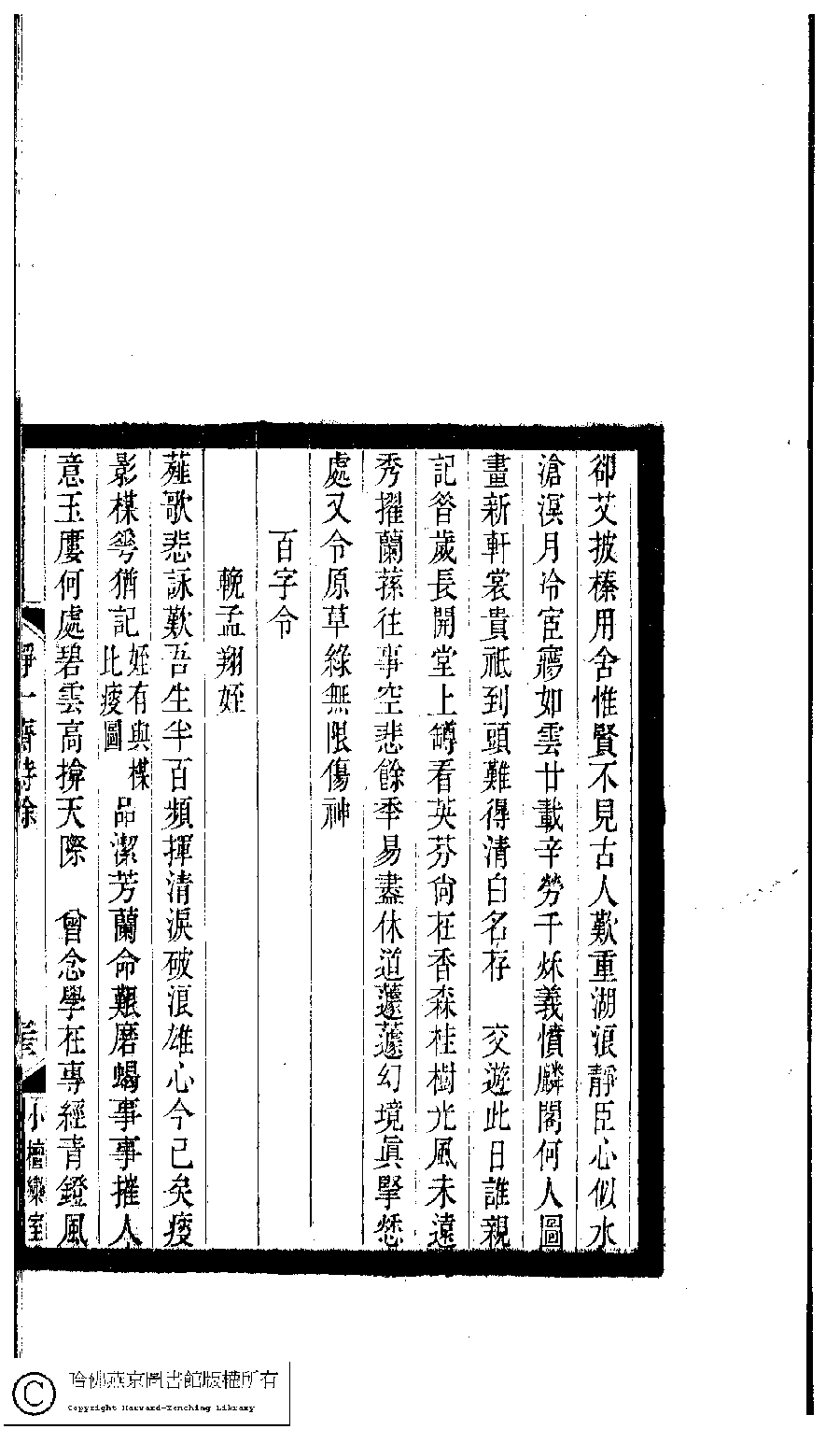 | 百字令 : 輓孟翔姪 Bai zi ling : Wan Mengxiang zhi 詞 ci 周詒蘩﹐字茹馨 Zhou Yifan, zi: Ruxin 小檀欒室彙刻閨秀詞﹕十集一百種一百卷(清徐乃昌輯) 靜一齋詩餘﹕一卷 Xiao tan luan shi hui ke gui xiu ci: 10 ji 100 zhong 100 juan (edited by Xu Naichang, Qing dynasty) Jing yi zhai shi yu: 1 juan, pp. 靜一齋詩餘.33a,靜一齋詩餘.33b. |
