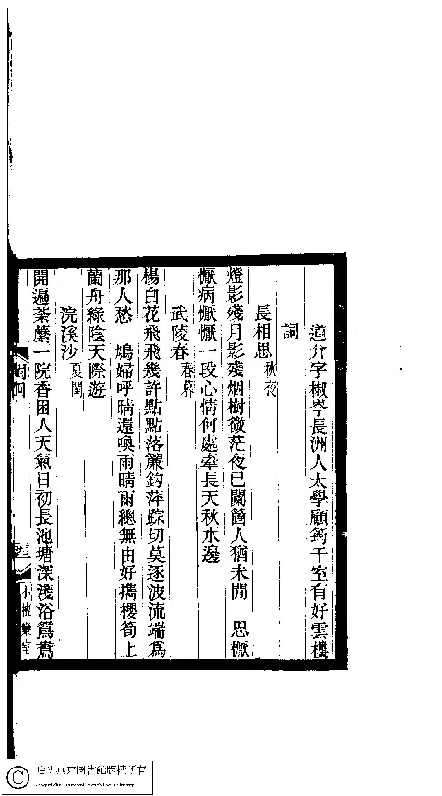 閨秀詞鈔﹕十六卷(清徐乃昌輯) Gui xiu ci chao: 16 juan (edited by Xu Naichang, Qing dynasty) , pp. 4.22b,4.23a.