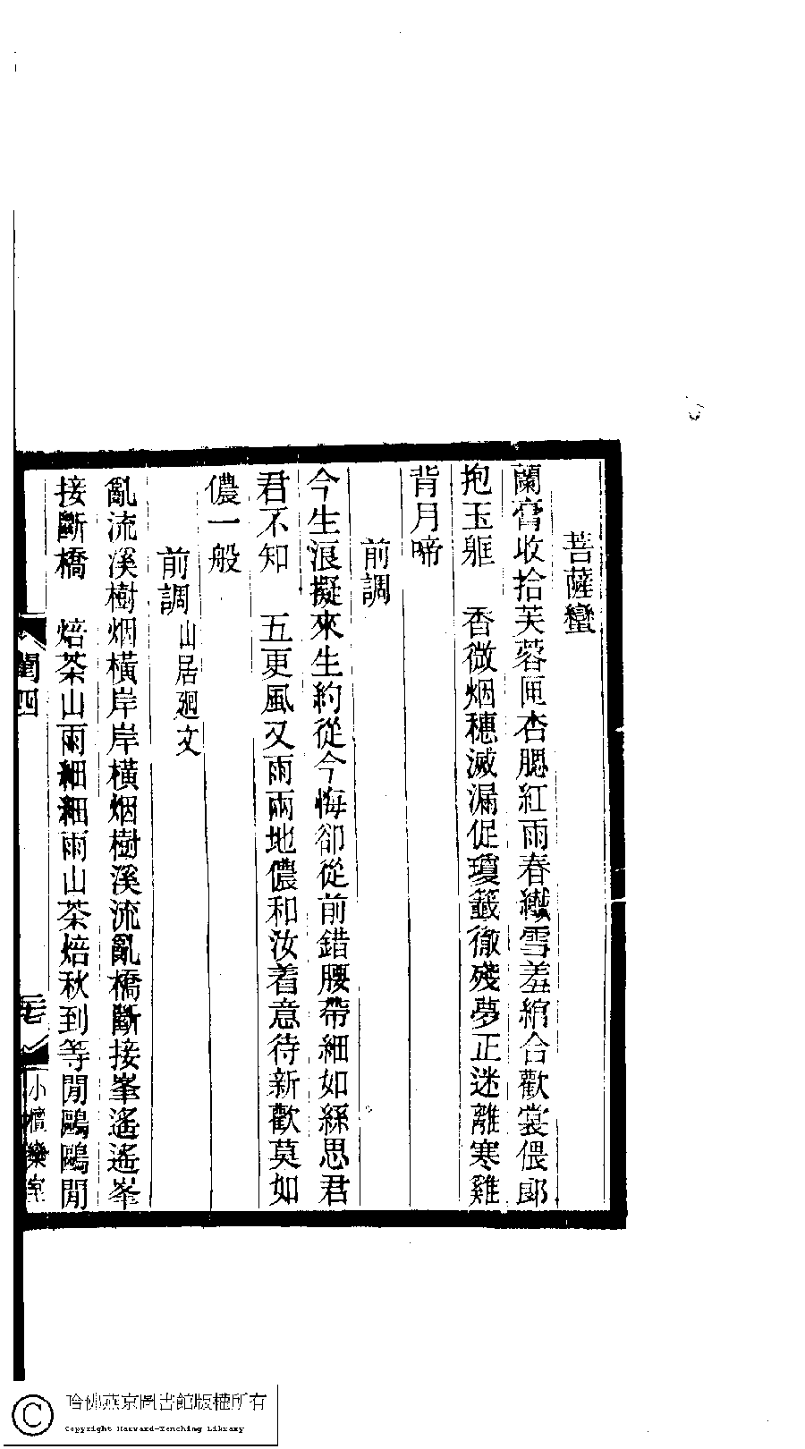 | (PRINT FRIENDLY VERSION) 閨秀詞鈔﹕十六卷(清徐乃昌輯)。清宣統元年(1909)小檀欒室刻本。 ![]() 頁碼 : 4.27a | 点 击 放 大 | 返回 |