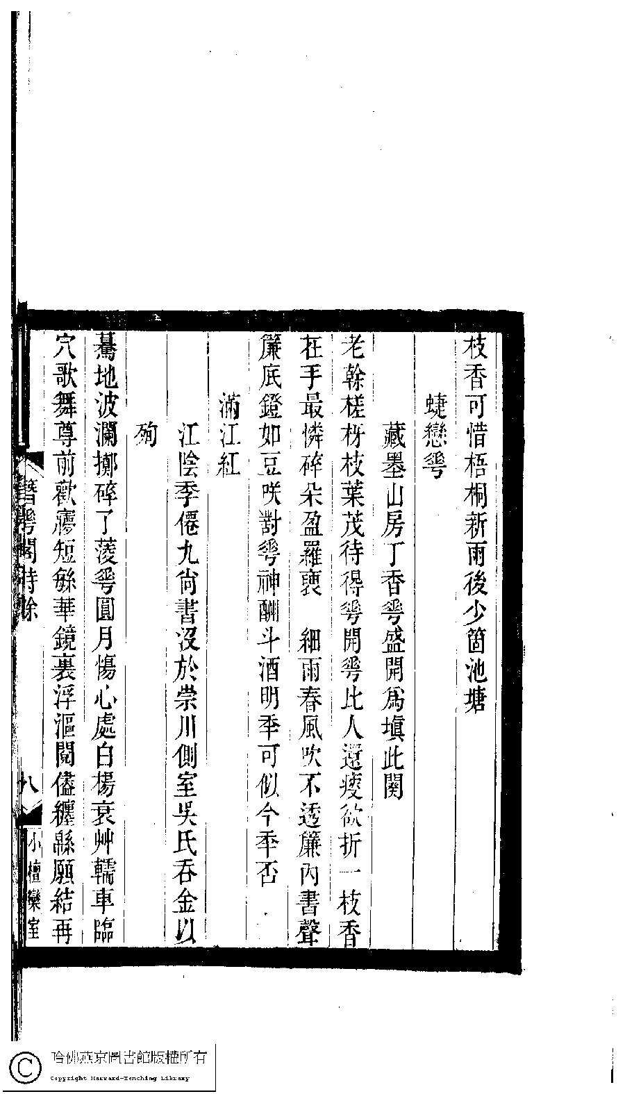 | 原書: 小檀欒室彙刻閨秀詞﹕十集一百種一百卷(清徐乃昌輯): 簪花閣詩餘﹕一卷 |