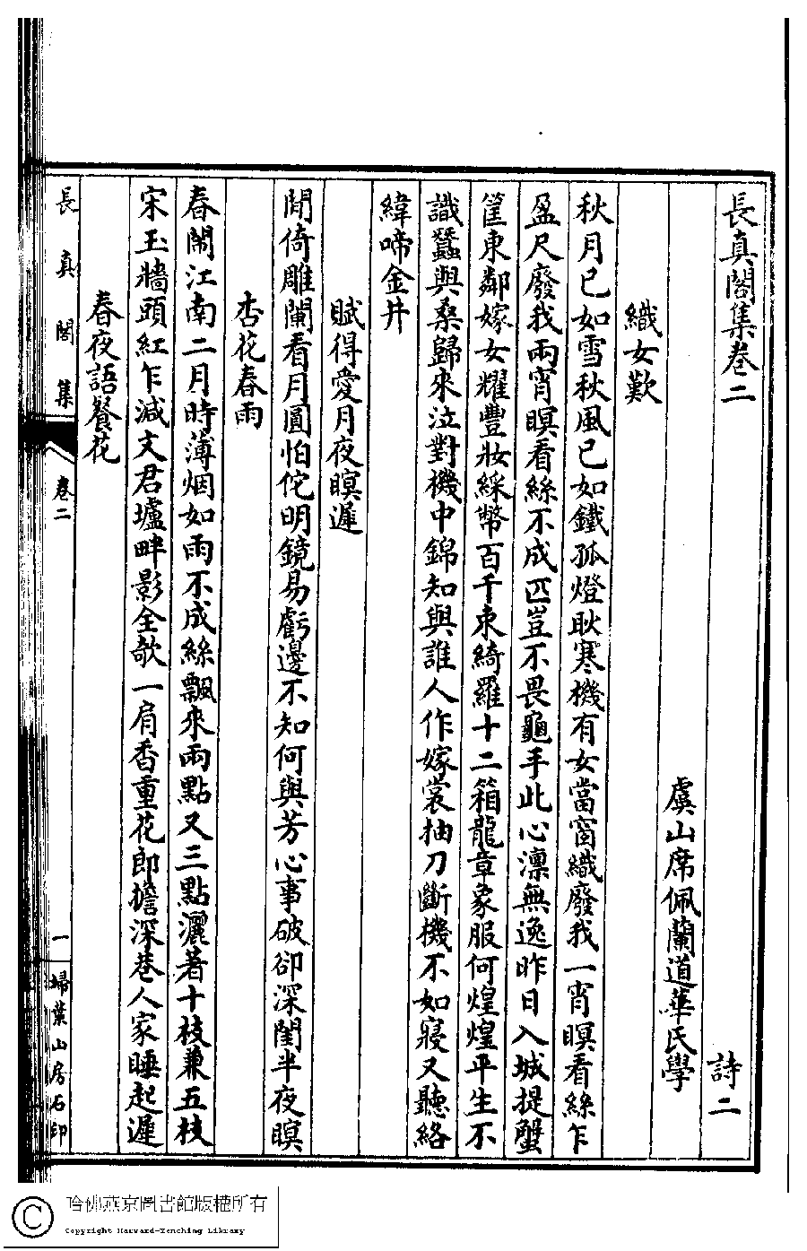 | 原書: 長真閣集﹕七卷﹐詩餘﹕一卷(清席佩蘭撰) |