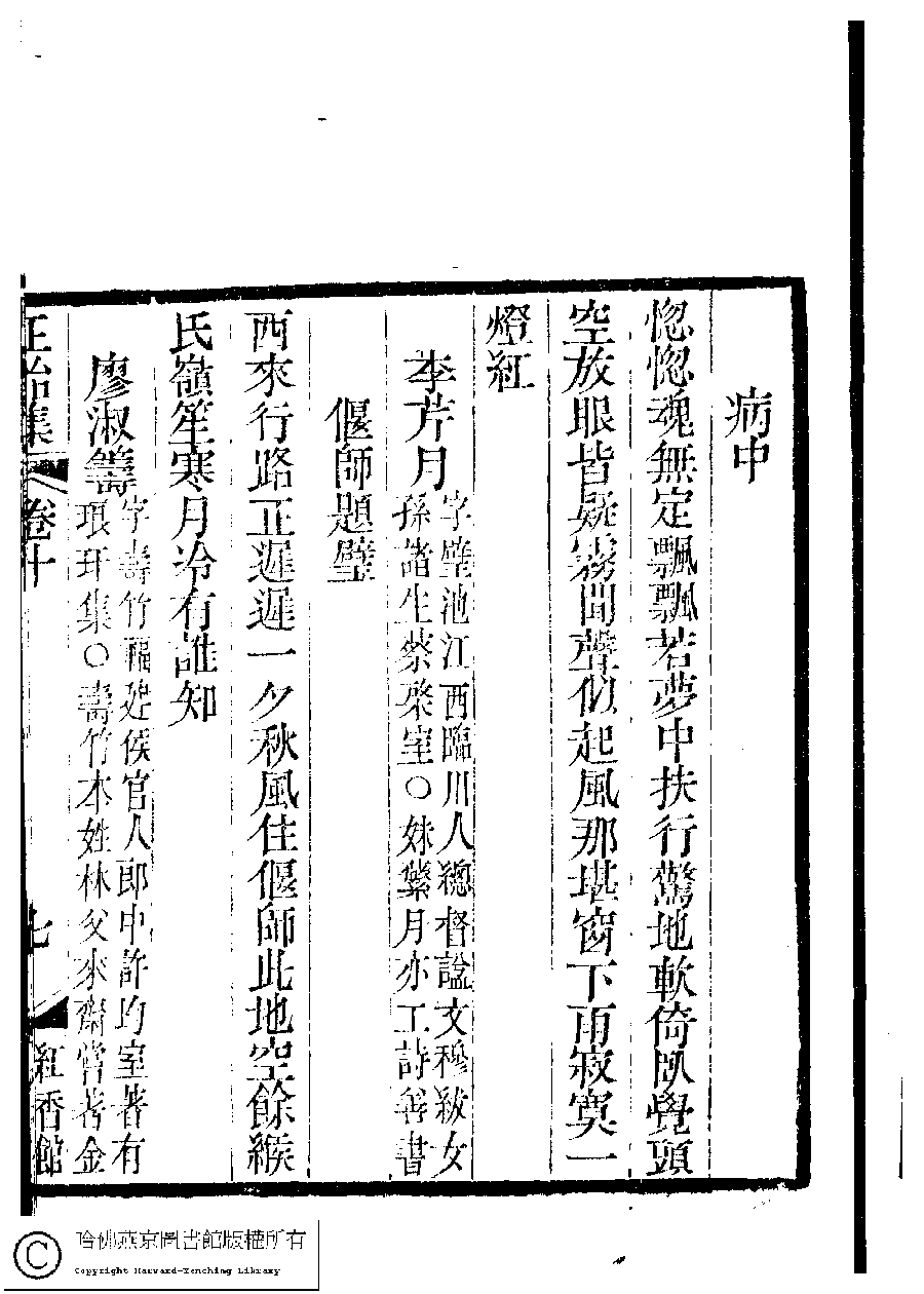 | 原書: 國朝閨秀正始集﹕二十卷﹐附錄﹕一卷﹐補遺﹕一卷﹐又附題詞﹕一卷(清惲珠輯) |