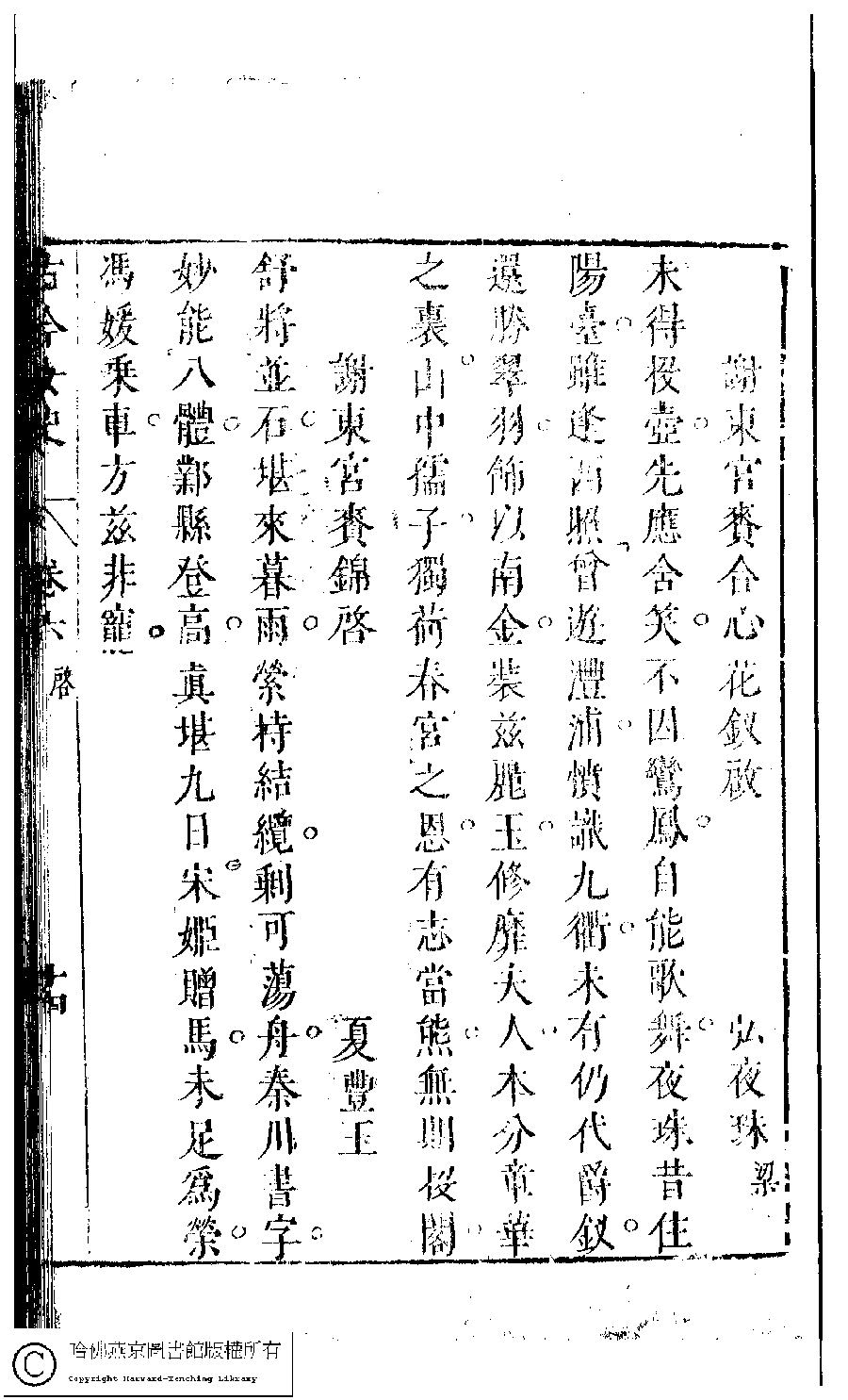 | (PRINT FRIENDLY VERSION) 古今女史﹕十二卷﹐詩集﹕八卷﹐附姓氏字里詳節﹕一卷(明趙世杰輯)。明崇禎(1628-1644)問奇閣刻本 ![]() 頁碼 : 6.14a | 点 击 放 大 | 返回 |
