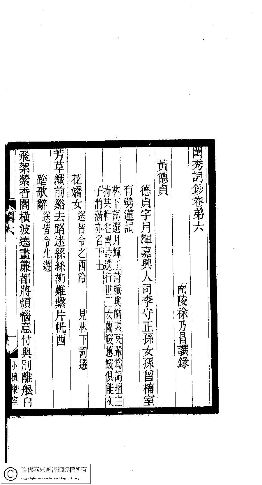 | 原書: 閨秀詞鈔﹕十六卷(清徐乃昌輯) |