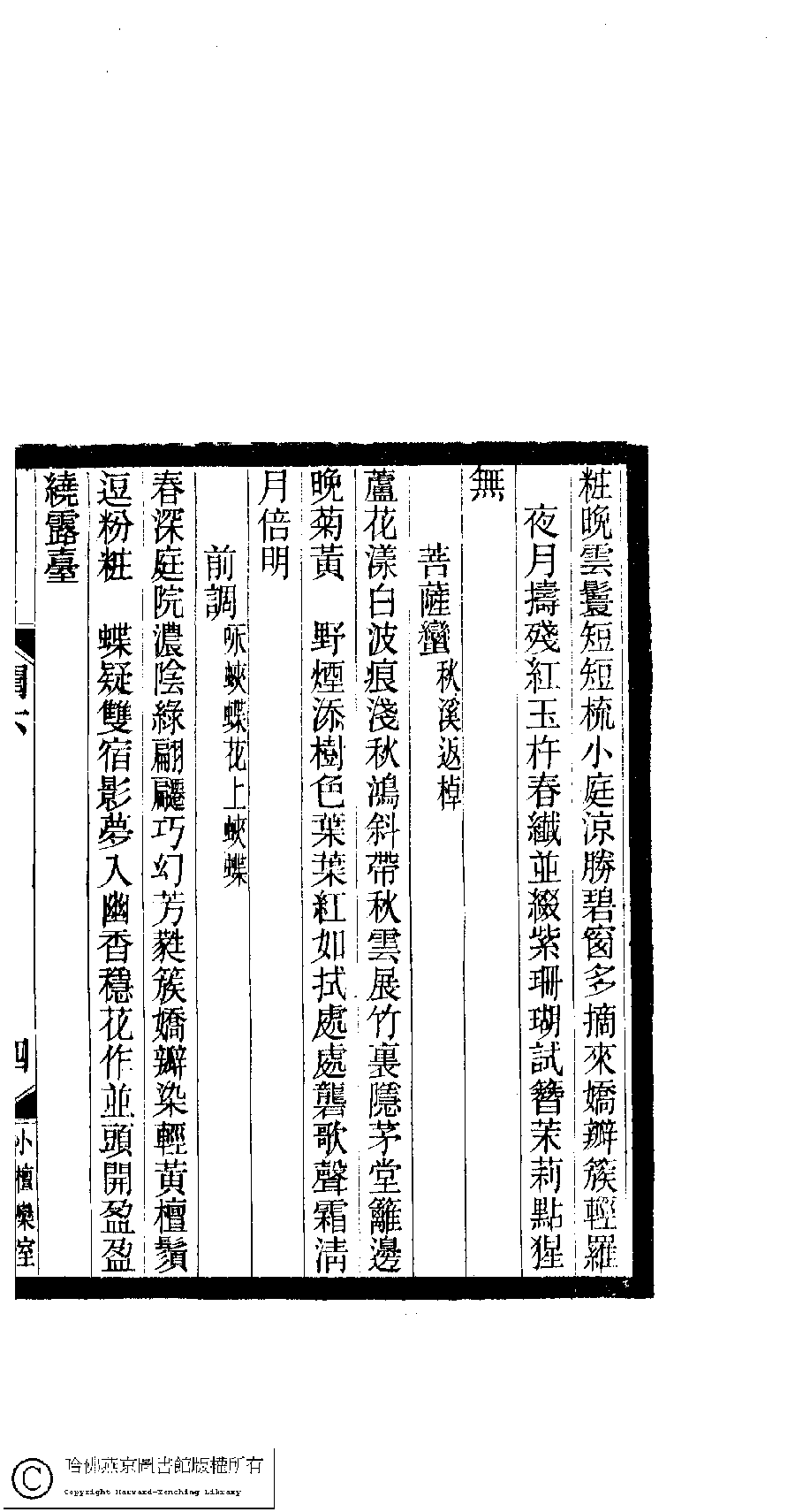 | (PRINT FRIENDLY VERSION) 閨秀詞鈔﹕十六卷(清徐乃昌輯)。清宣統元年(1909)小檀欒室刻本。 ![]() 頁碼 : 6.4a | 点 击 放 大 | 返回 |