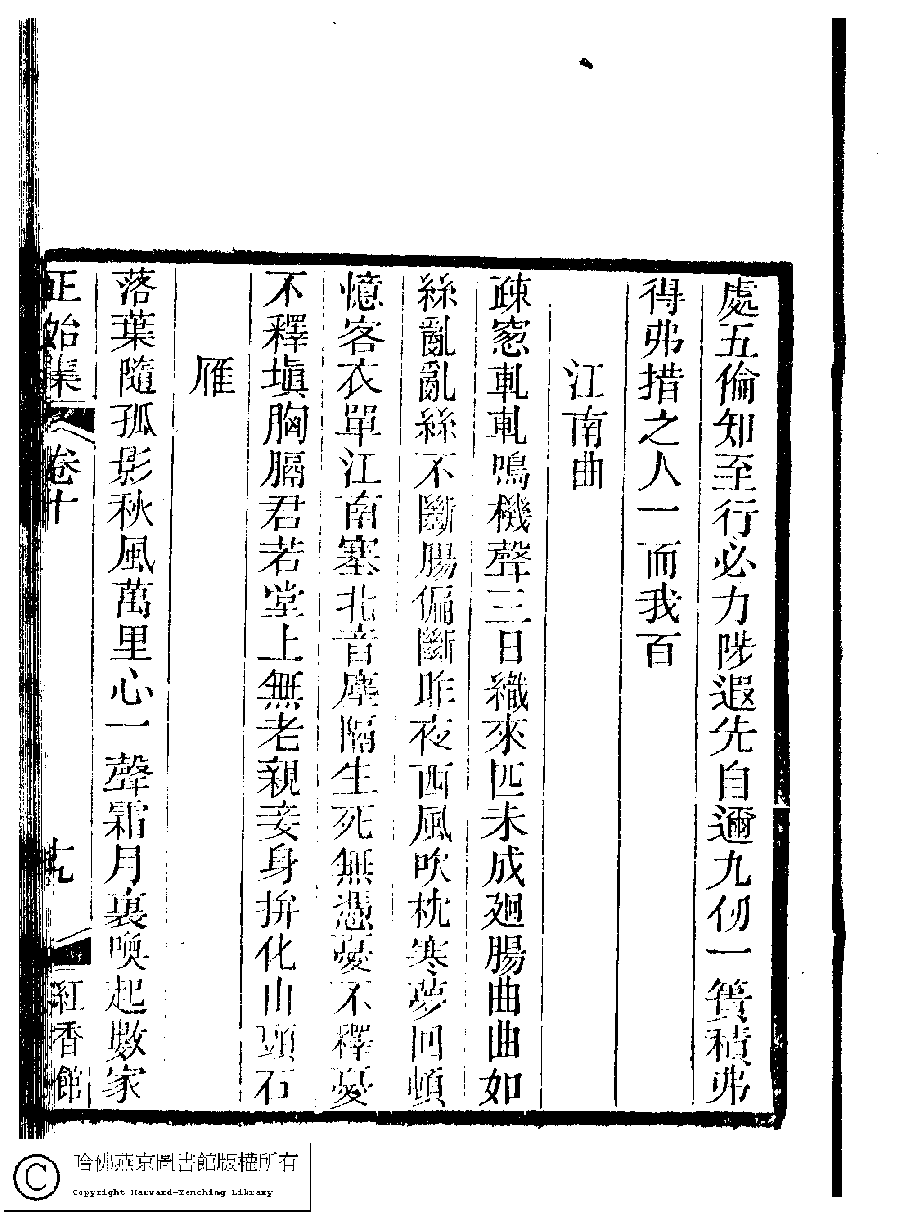 | 原書: 國朝閨秀正始集﹕二十卷﹐附錄﹕一卷﹐補遺﹕一卷﹐又附題詞﹕一卷(清惲珠輯) |