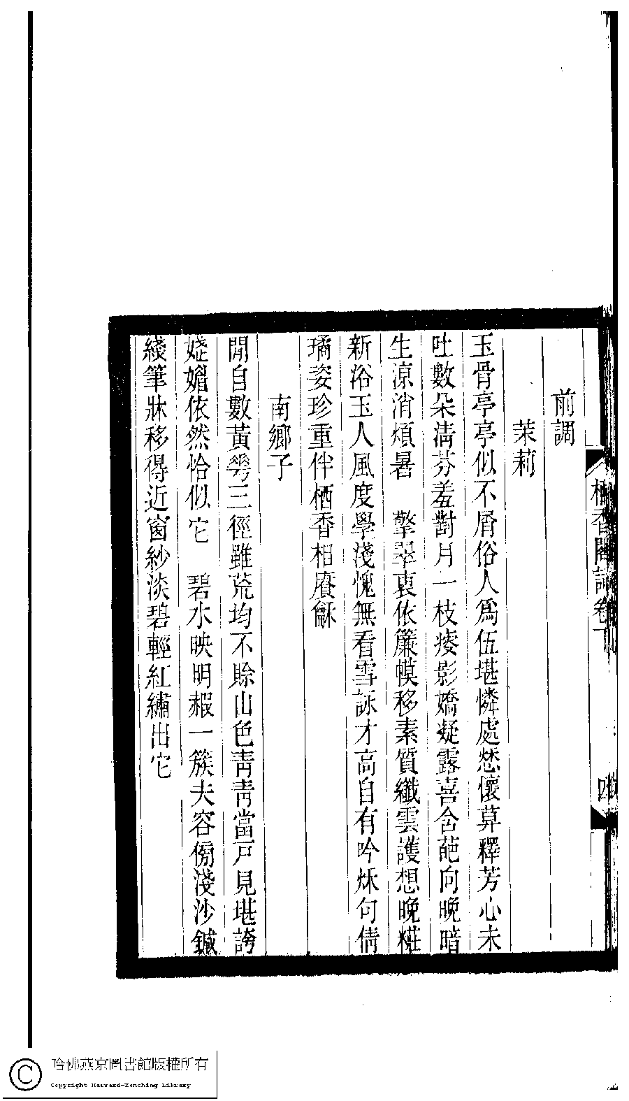 | 原書: 小檀欒室彙刻閨秀詞﹕十集一百種一百卷(清徐乃昌輯): 棲香閣詞﹕二卷 |