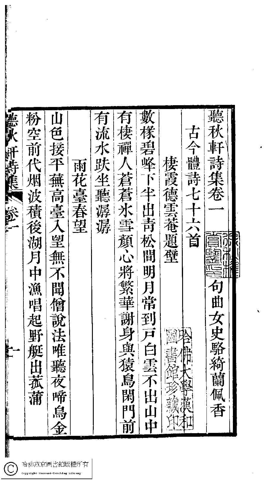 | 原書: 聽秋軒詩集﹕三卷(清駱綺蘭撰) |