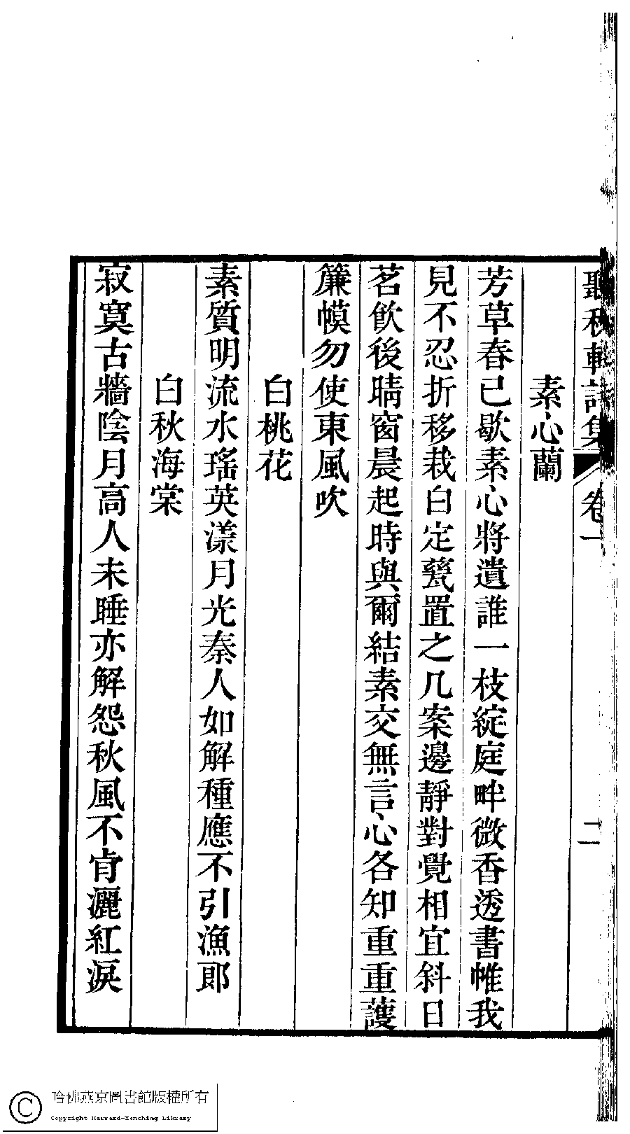 | 原書: 聽秋軒詩集﹕三卷(清駱綺蘭撰) |