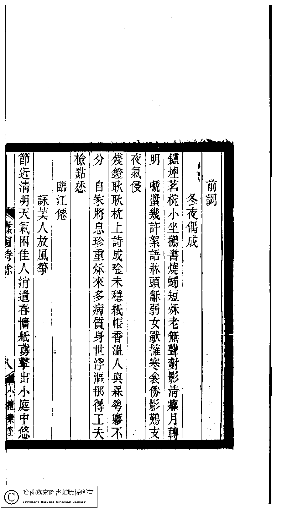 | 原書: 小檀欒室彙刻閨秀詞﹕十集一百種一百卷(清徐乃昌輯): 蠹窗詩餘﹕一卷 |
