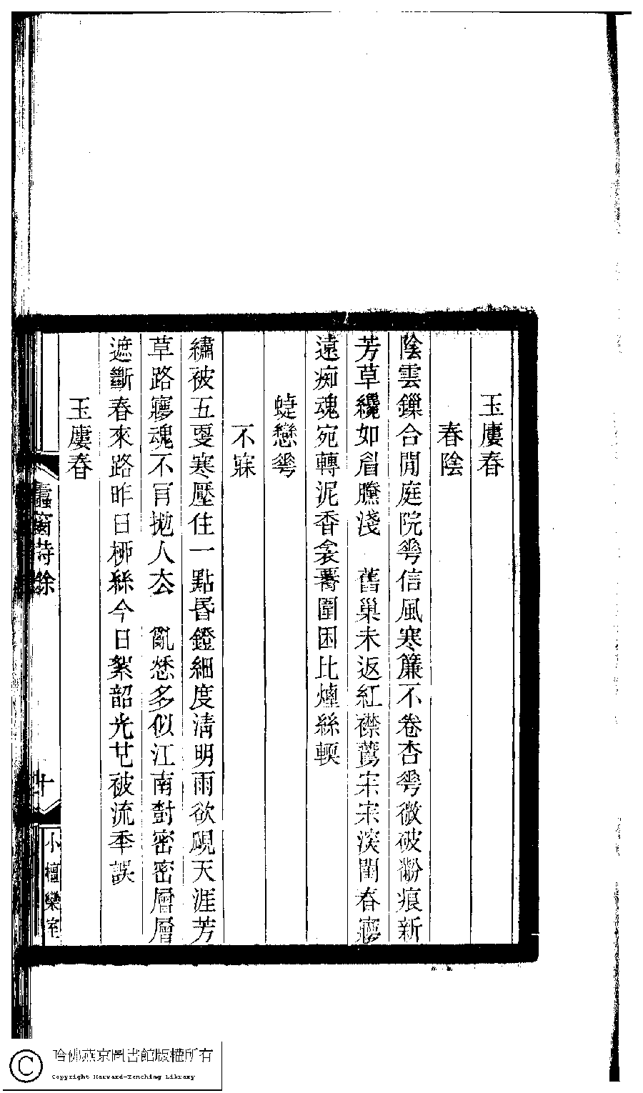 | 原書: 小檀欒室彙刻閨秀詞﹕十集一百種一百卷(清徐乃昌輯): 蠹窗詩餘﹕一卷 |