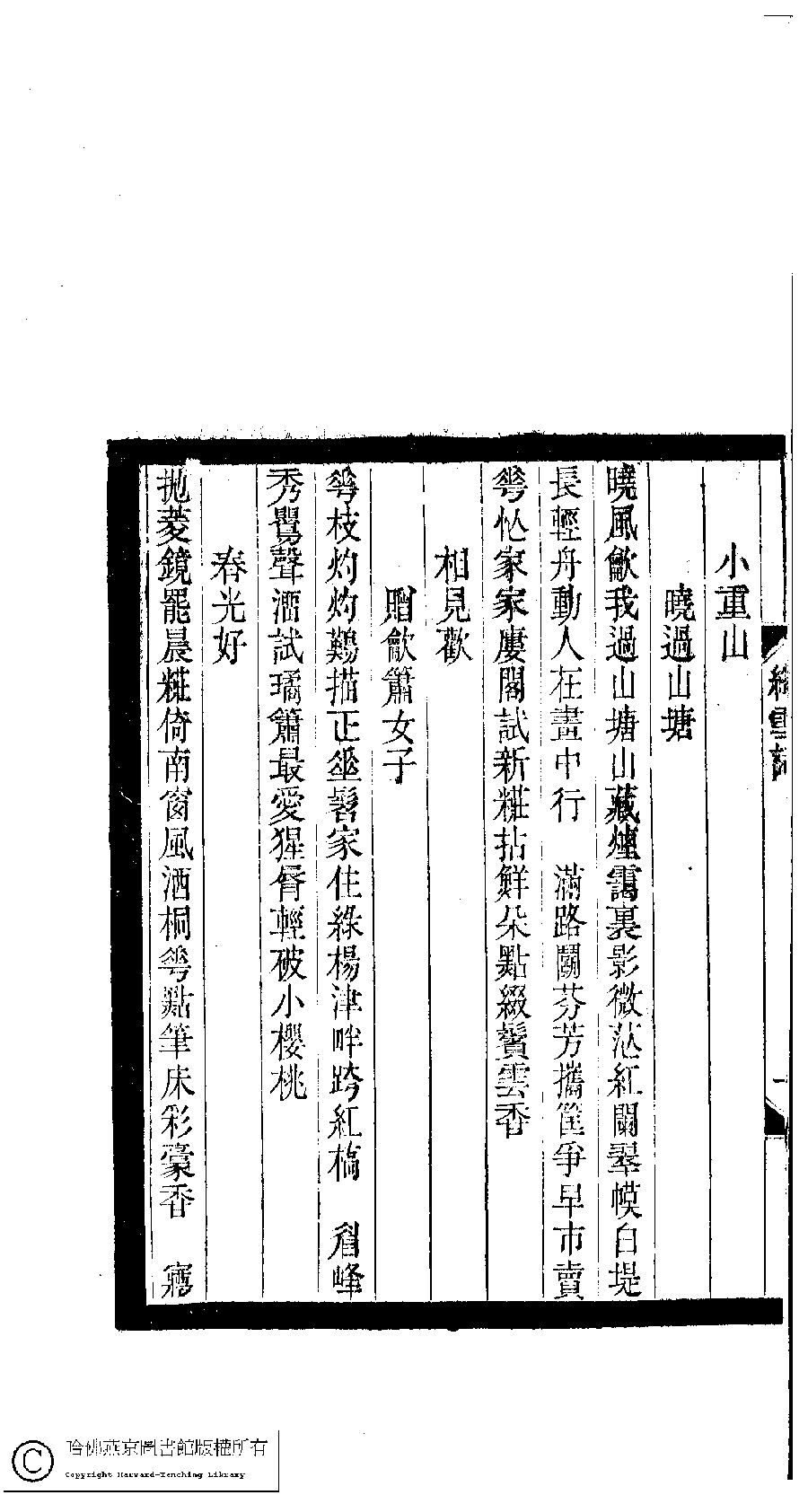 | 原書: 小檀欒室彙刻閨秀詞﹕十集一百種一百卷(清徐乃昌輯): 絳雪詞﹕一卷 |
