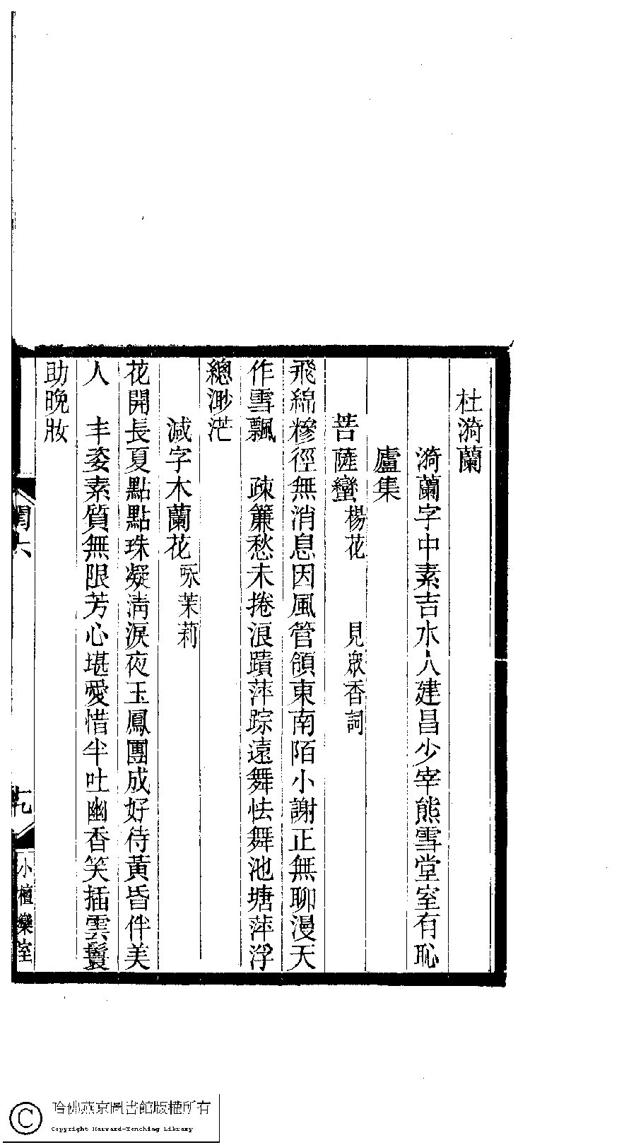 | (PRINT FRIENDLY VERSION) 閨秀詞鈔﹕十六卷(清徐乃昌輯)。清宣統元年(1909)小檀欒室刻本。 ![]() 頁碼 : 6.19a | 点 击 放 大 | 返回 |
