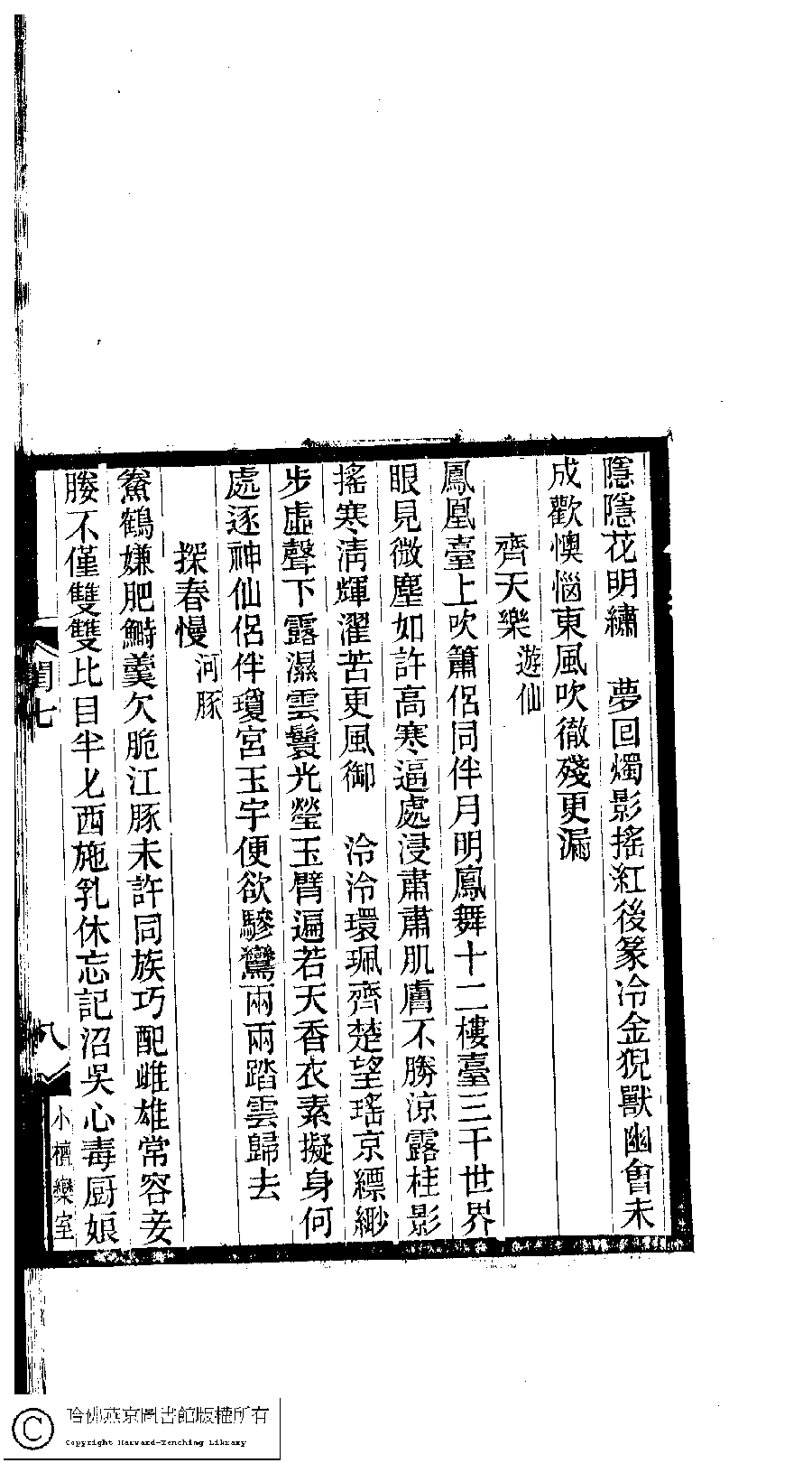 | (PRINT FRIENDLY VERSION) 閨秀詞鈔﹕十六卷(清徐乃昌輯)。清宣統元年(1909)小檀欒室刻本。 ![]() 頁碼 : 7.8a | 点 击 放 大 | 閨秀詞鈔﹕十六卷(清徐乃昌輯)。清宣統元年(1909)小檀欒室刻本。![]() 頁碼 : 7.7b | 点 击 放 大 | 返回 |