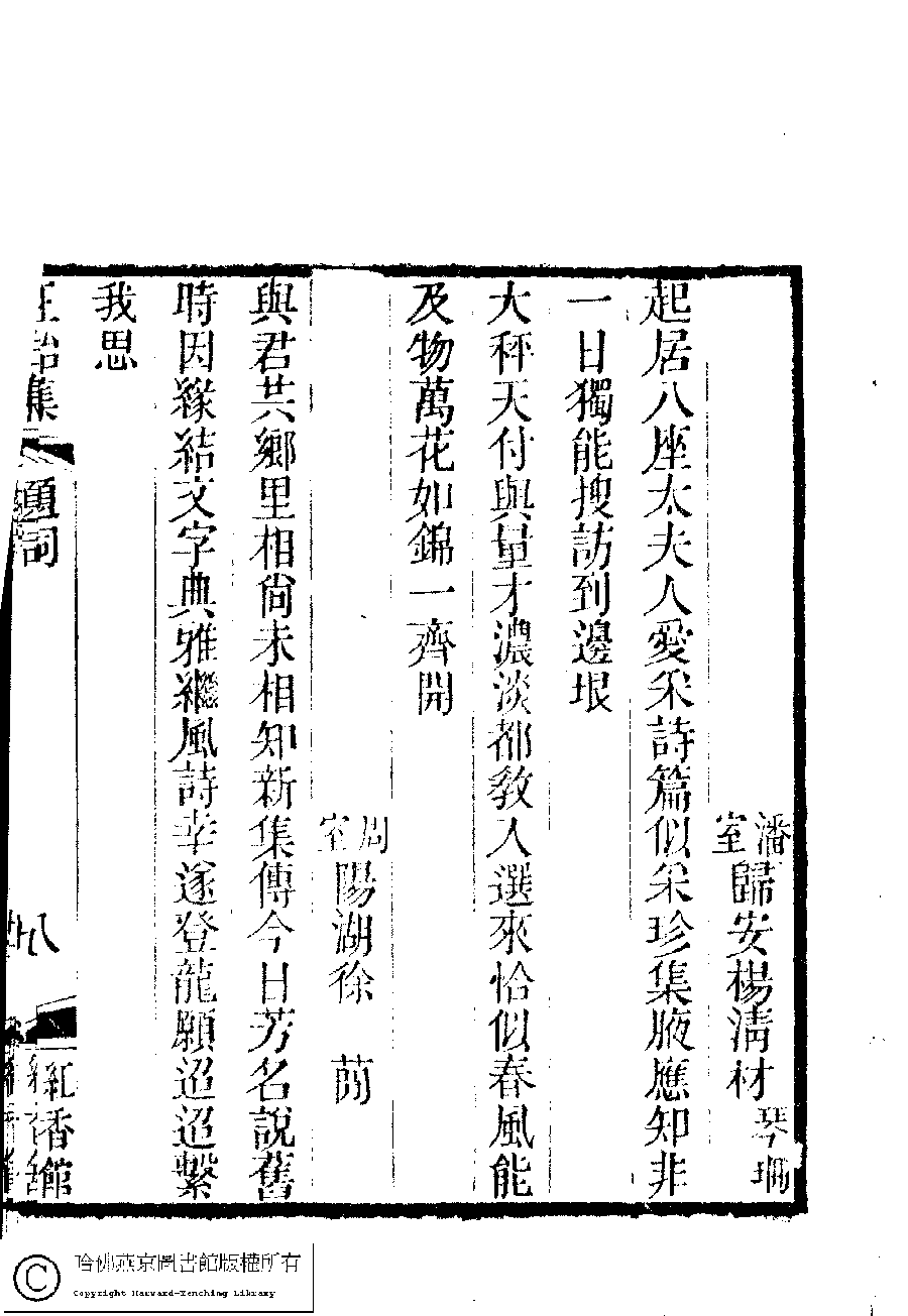 | 原書: 國朝閨秀正始集﹕二十卷﹐附錄﹕一卷﹐補遺﹕一卷﹐又附題詞﹕一卷(清惲珠輯) |