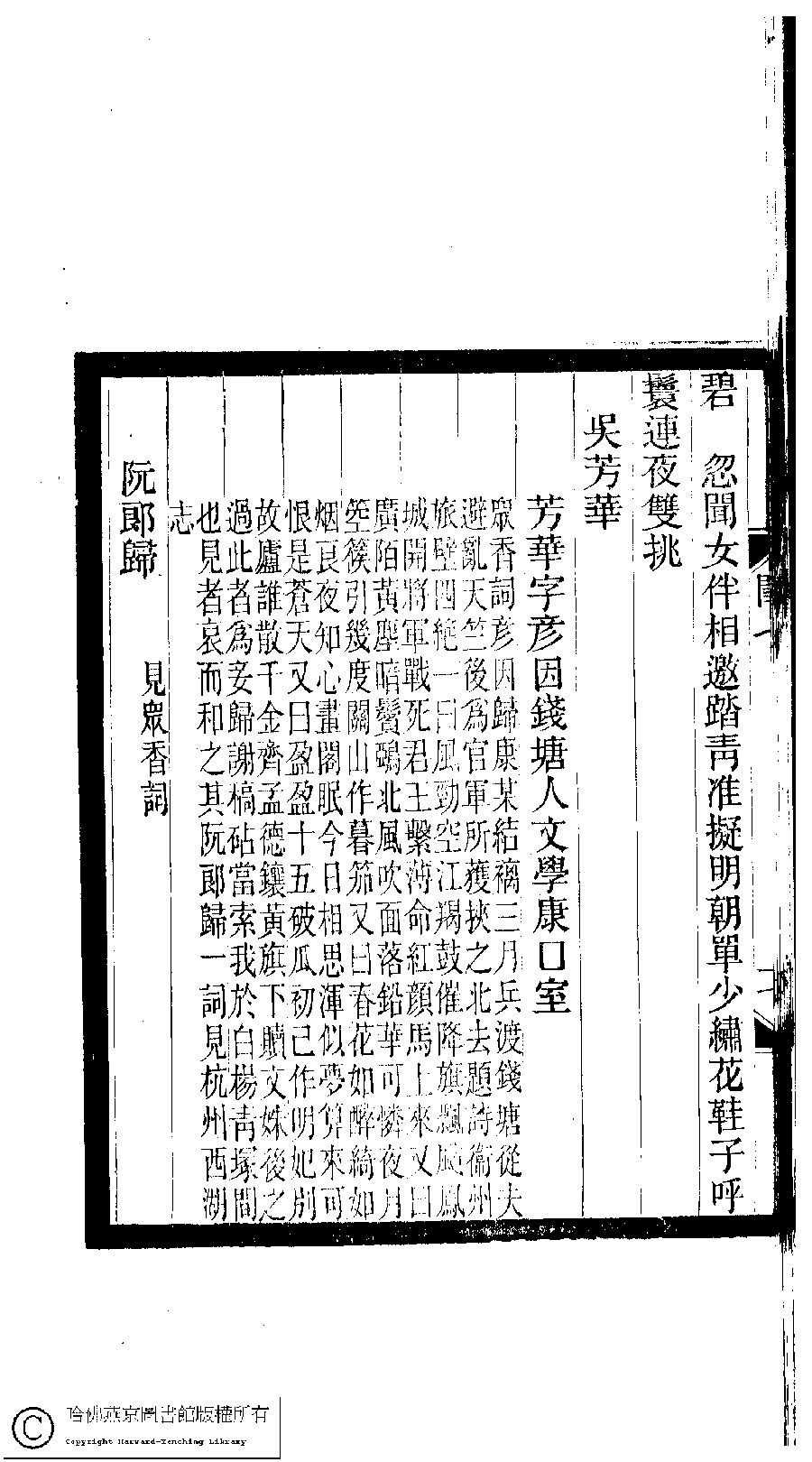 | (PRINT FRIENDLY VERSION) 閨秀詞鈔﹕十六卷(清徐乃昌輯)。清宣統元年(1909)小檀欒室刻本。 ![]() 頁碼 : 7.17b | 点 击 放 大 | 返回 |