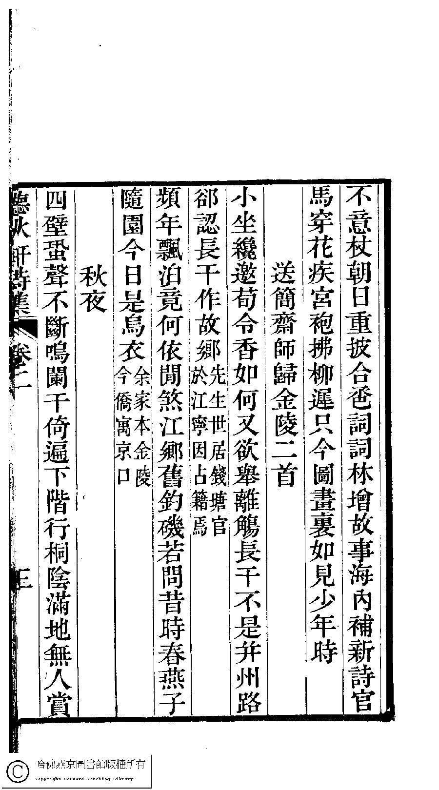| 原書: 聽秋軒詩集﹕三卷(清駱綺蘭撰) |