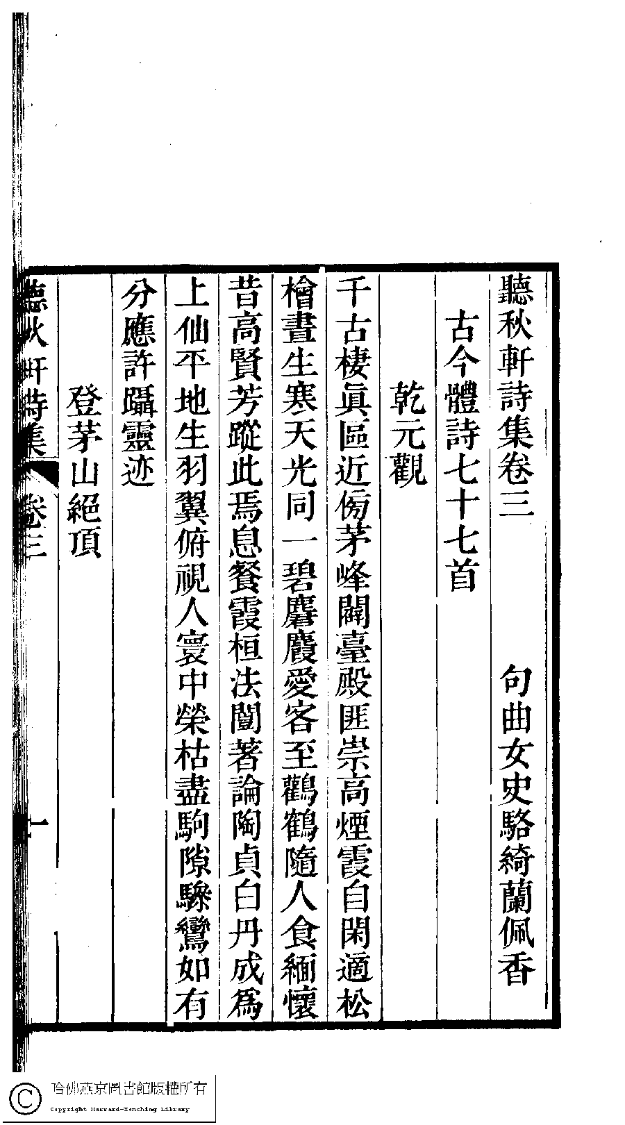 | 原書: 聽秋軒詩集﹕三卷(清駱綺蘭撰) |
