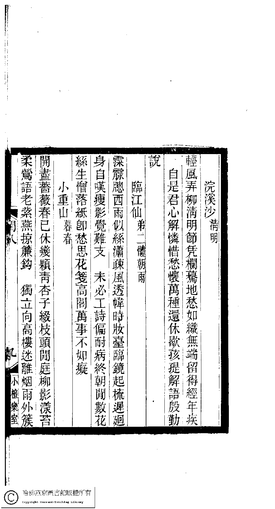 | (PRINT FRIENDLY VERSION) 閨秀詞鈔﹕十六卷(清徐乃昌輯)。清宣統元年(1909)小檀欒室刻本。 ![]() 頁碼 : 8.9a | 点 击 放 大 | 返回 |