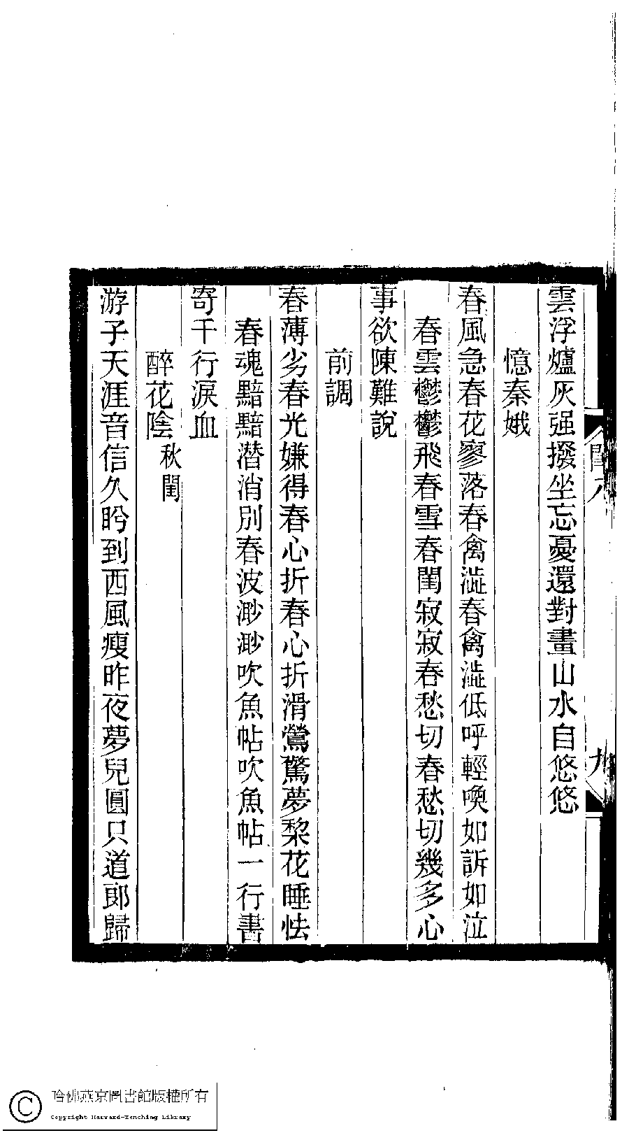 | (PRINT FRIENDLY VERSION) 閨秀詞鈔﹕十六卷(清徐乃昌輯)。清宣統元年(1909)小檀欒室刻本。 ![]() 頁碼 : 8.9b | 点 击 放 大 | 返回 |