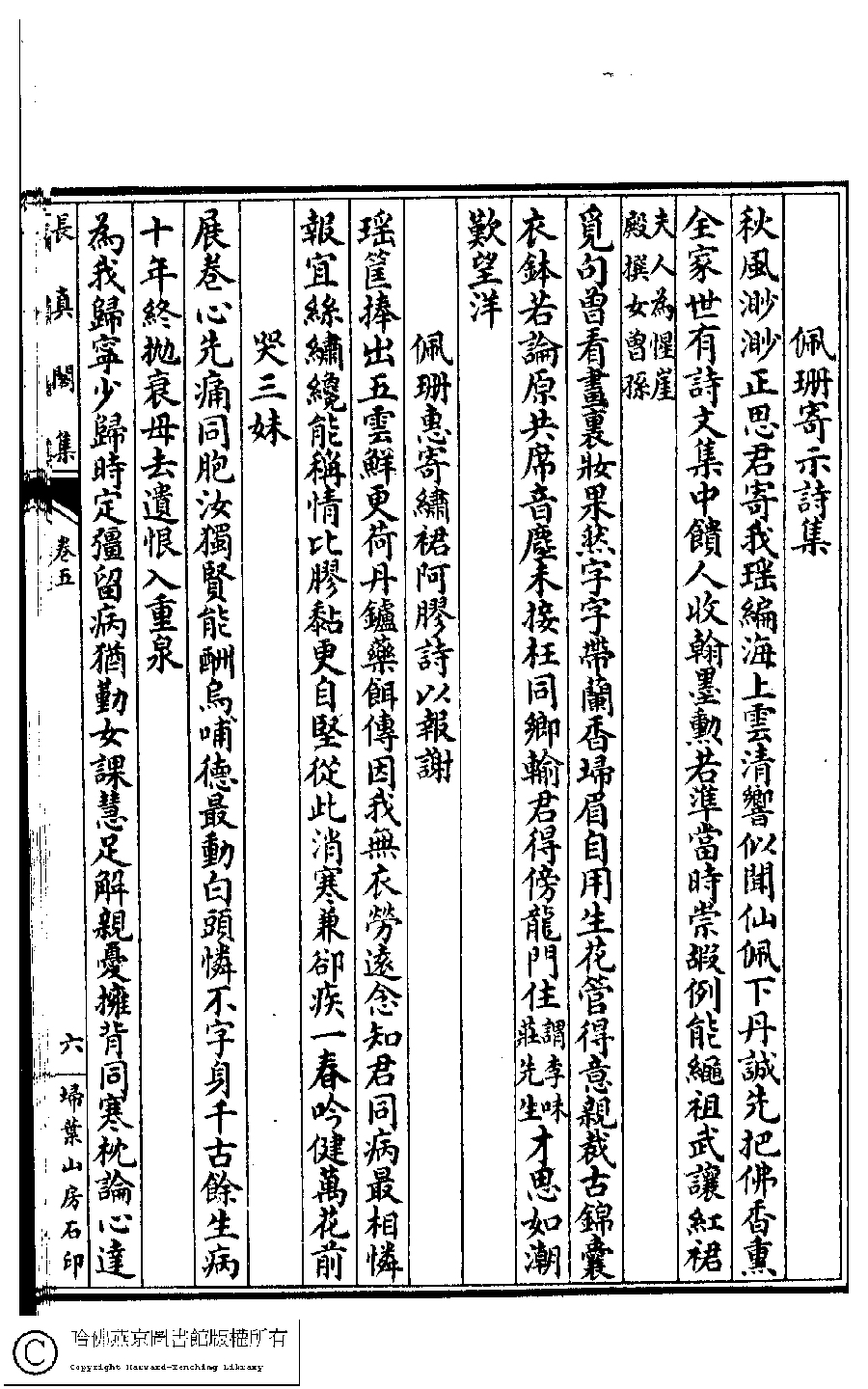 | 原書: 長真閣集﹕七卷﹐詩餘﹕一卷(清席佩蘭撰) |