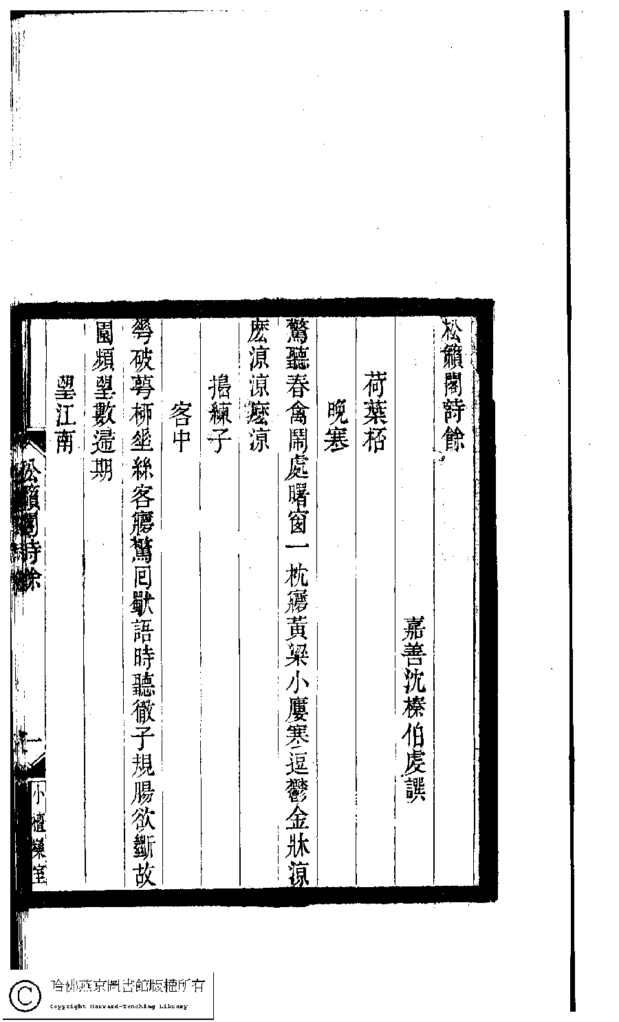 | 原書: 小檀欒室彙刻閨秀詞﹕十集一百種一百卷(清徐乃昌輯): 松籟閣詩餘﹕一卷 |