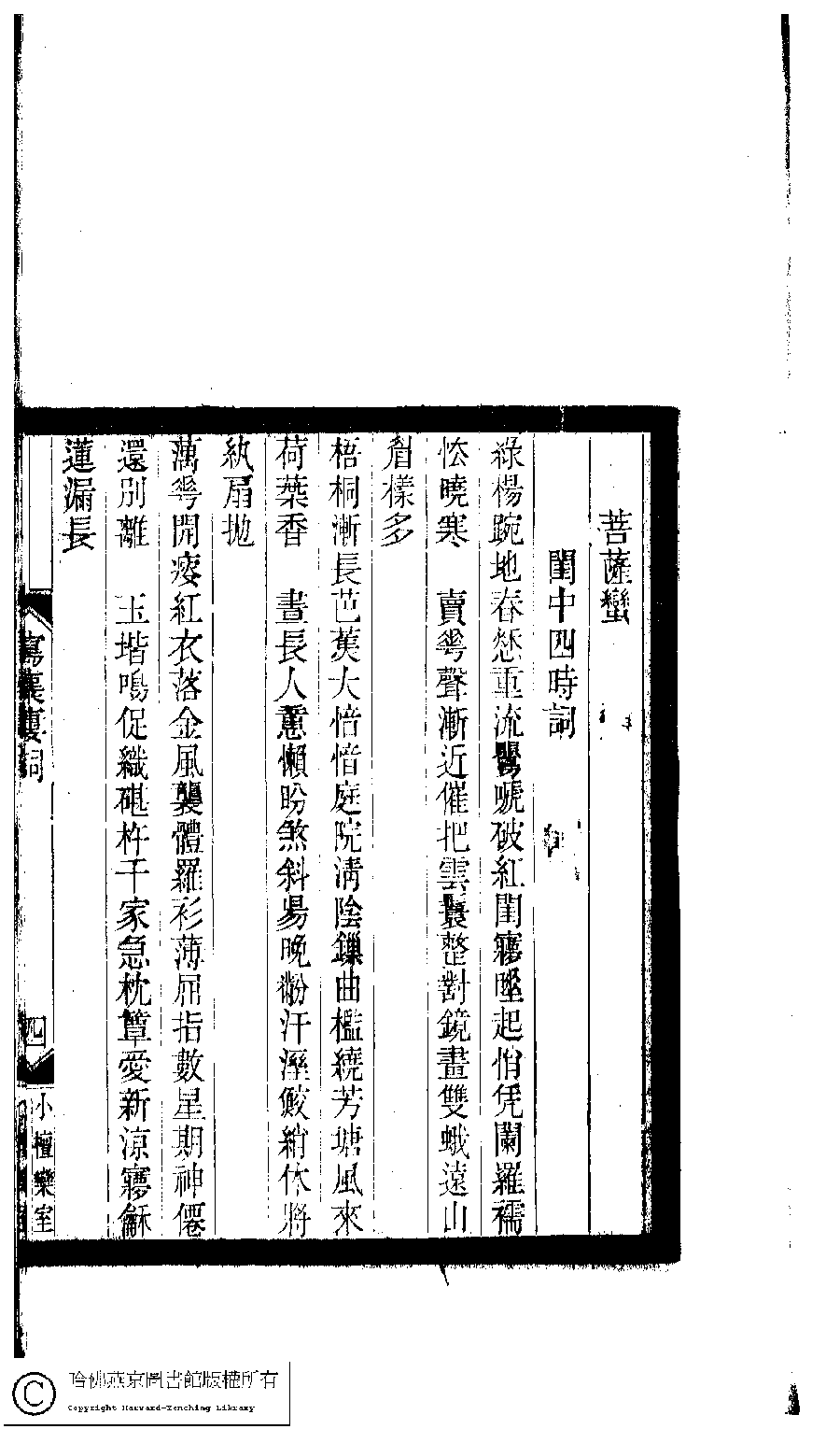 | 原書: 小檀欒室彙刻閨秀詞﹕十集一百種一百卷(清徐乃昌輯): 寫韻樓詞﹕一卷 |