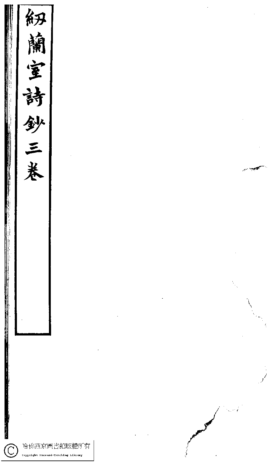 紉蘭室詩鈔﹕三卷(清嚴永華撰)。清光緒十七年(1891)刻本。