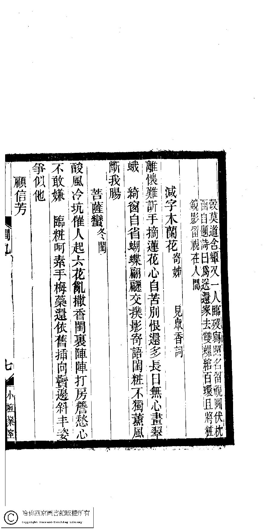 | (PRINT FRIENDLY VERSION) 閨秀詞鈔﹕十六卷(清徐乃昌輯)。清宣統元年(1909)小檀欒室刻本。 ![]() 頁碼 : 9.7a | 点 击 放 大 | 返回 |