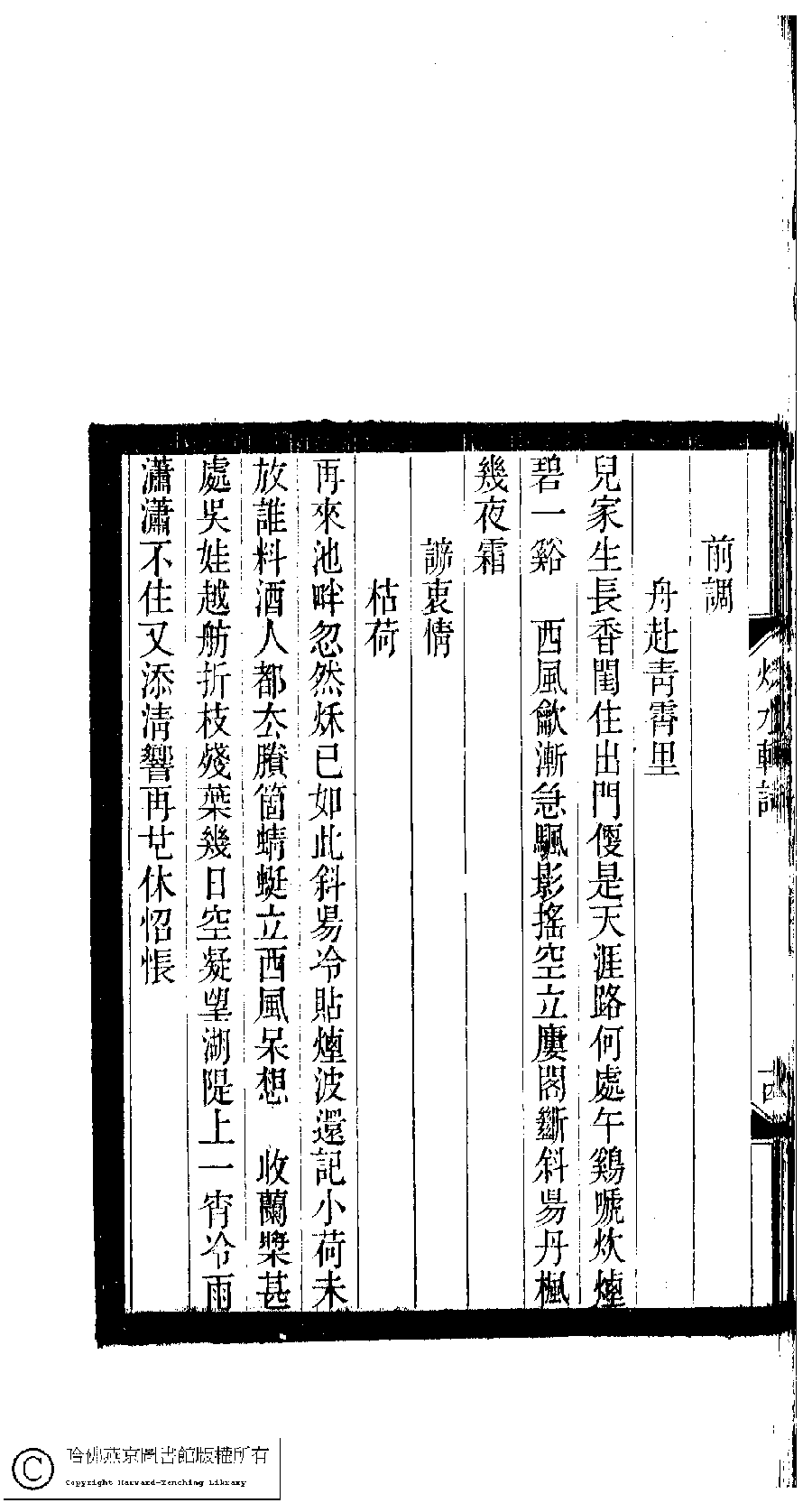 | 原書: 小檀欒室彙刻閨秀詞﹕十集一百種一百卷(清徐乃昌輯): 秋水軒詞﹕一卷 |