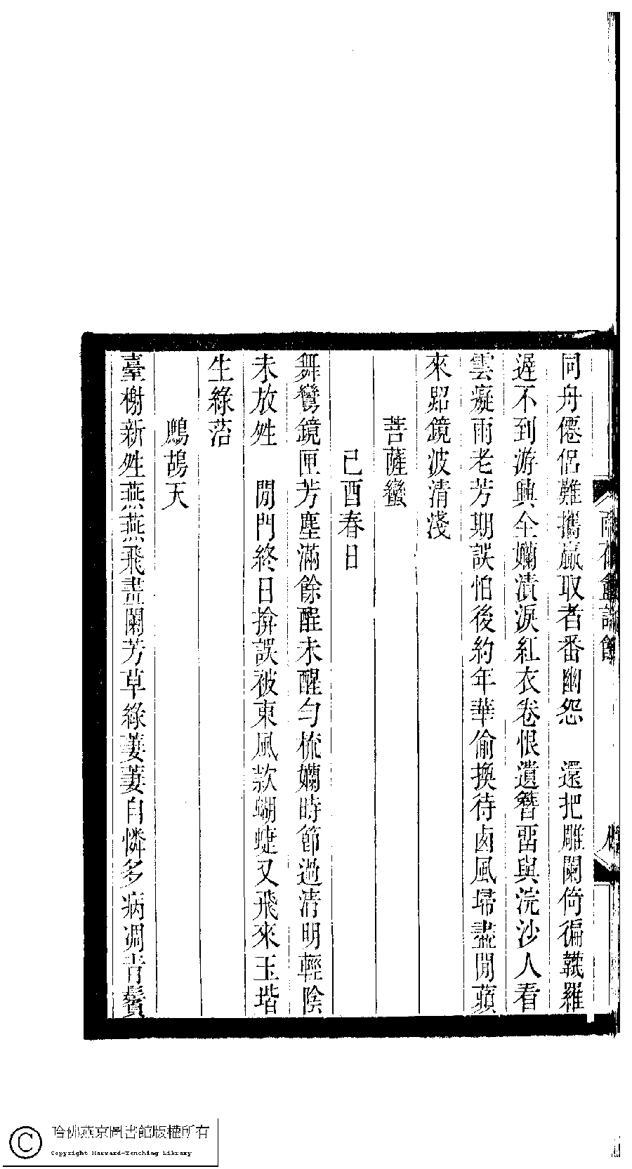 | 原書: 小檀欒室彙刻閨秀詞﹕十集一百種一百卷(清徐乃昌輯): 雨花盦詩餘﹕一卷 |