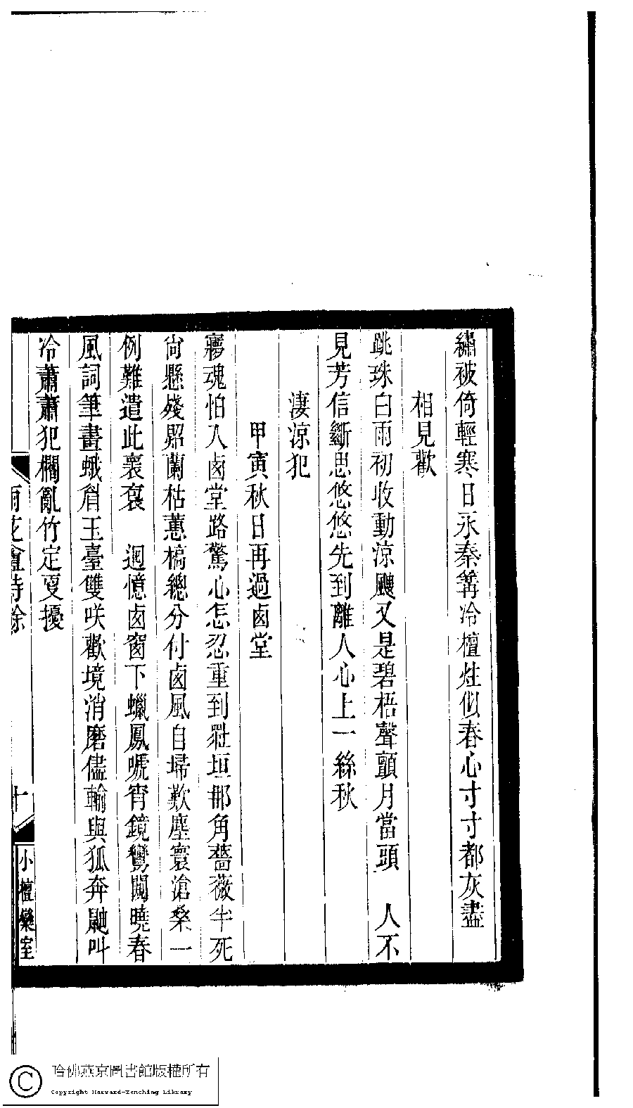 | 原書: 小檀欒室彙刻閨秀詞﹕十集一百種一百卷(清徐乃昌輯): 雨花盦詩餘﹕一卷 |