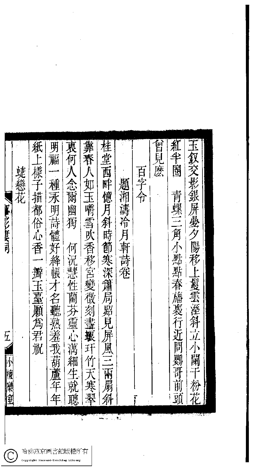 詩詞 [百字令 ﹕題湘濤冷月軒詩卷]